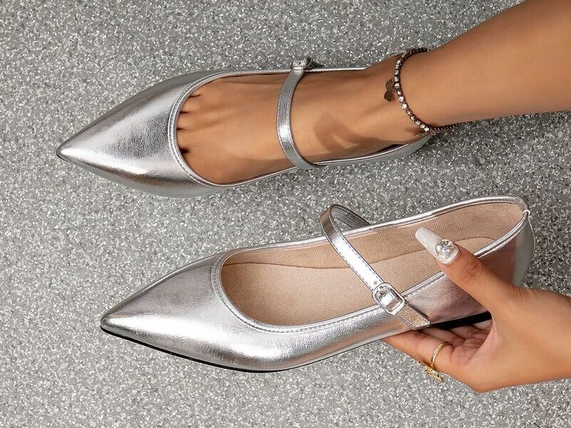 با لباس مجلسی مشکی چه کفشی بپوشیم؟ کفشهای نقرهای یا متالیک میتوانند یک گزینه جذاب برای لباس مجلسی مشکی باشند. این رنگ کفشها، تأثیر بسزایی در جلوه و درخشش لباس مجلسی مشکی دارند. شما میتوانید هنگام پوشیدن «پیراهن ماکسی الهه»، از کفشهای تخت یا پاشنه بلند نقرهای استفاده کنید.