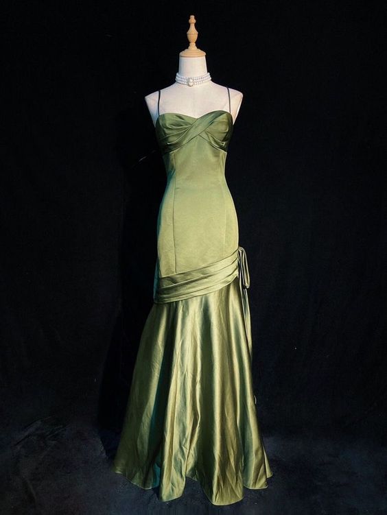 2.پیراهن مجلسی سبز زیتونی حریر: