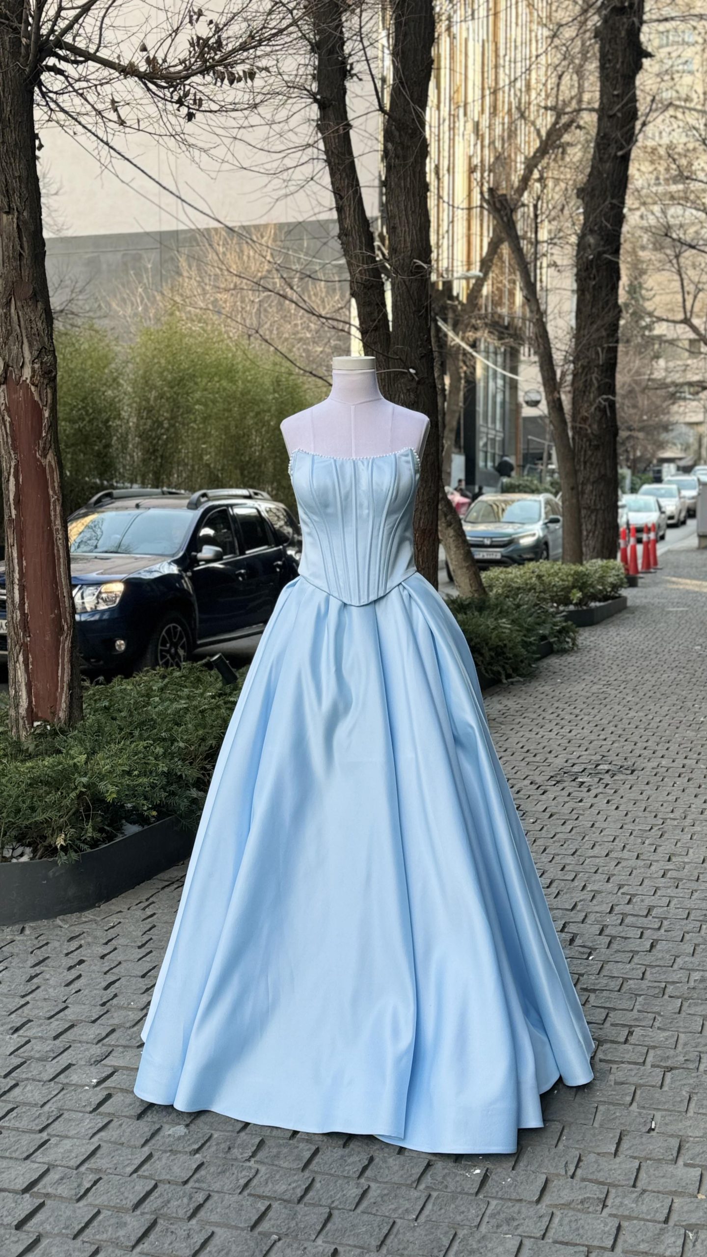 • جزئیات خاص و منحصربه‌فرد: خرج‌کار مروارید در رنگ‌های سفید و آبی آسمانی، این ست را برای استایل‌های خاص و رسمی ایده‌آل کرده است