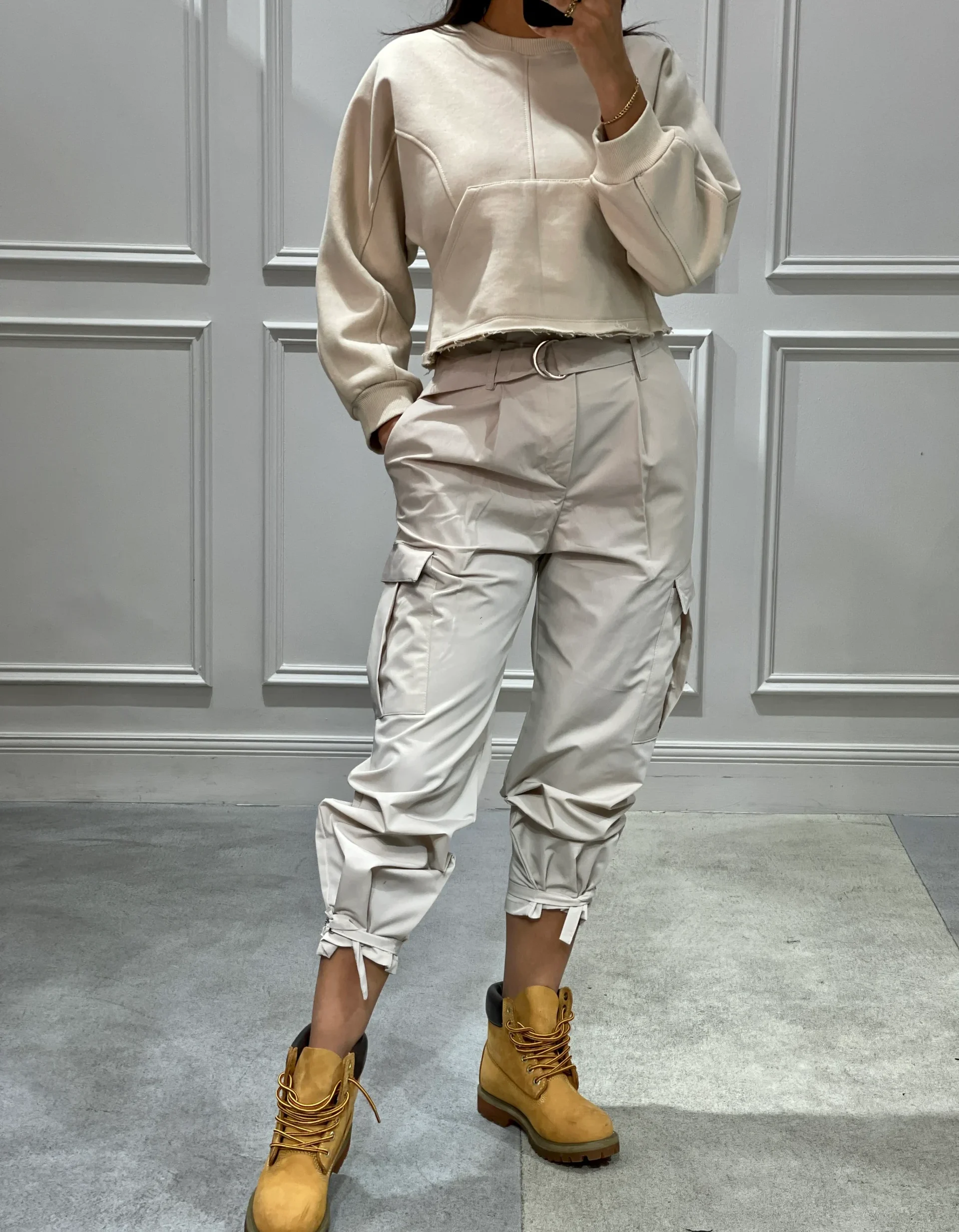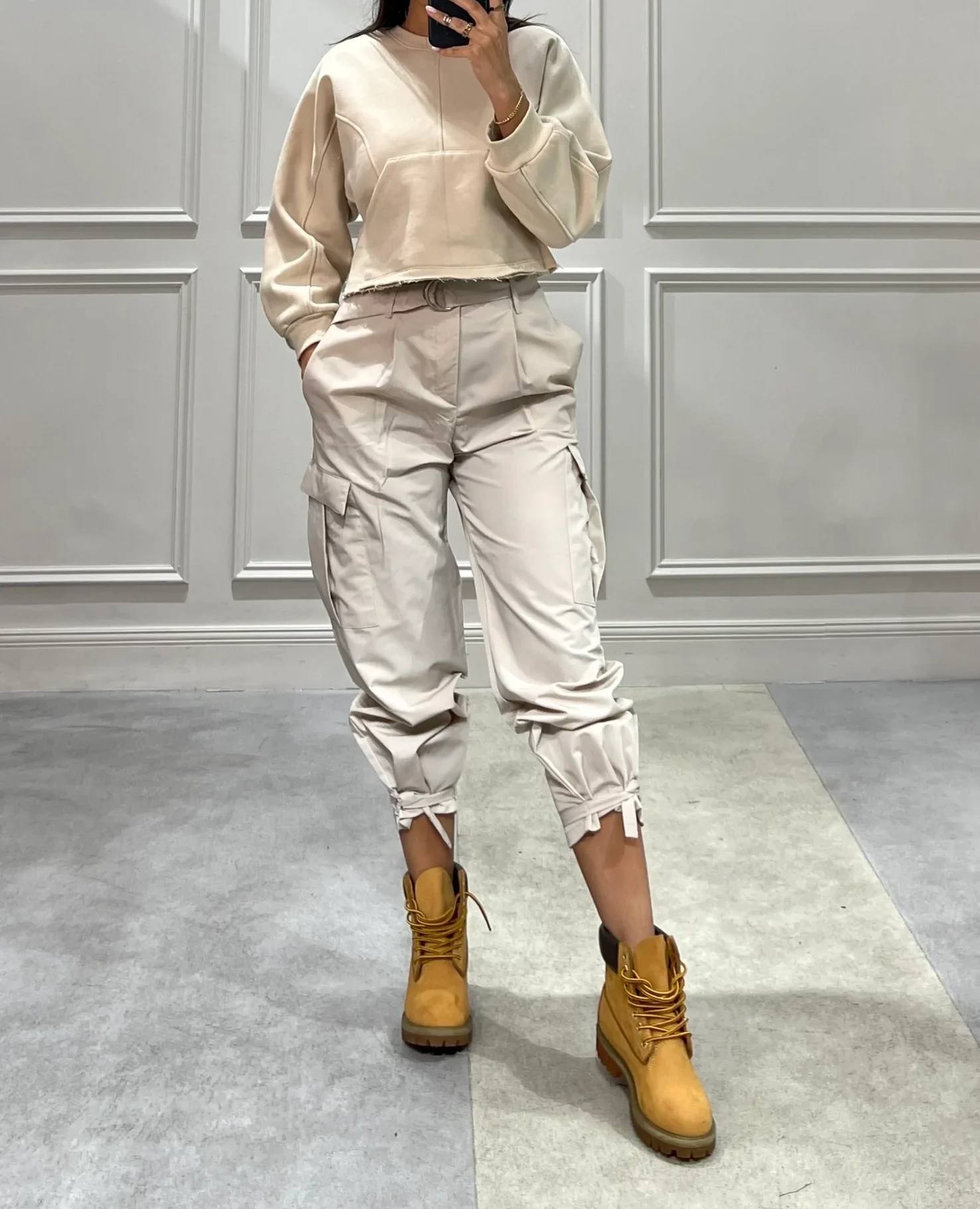 اگر میخواهید استایلی متفاوت و کلاسیکتر ایجاد کنید، میتوانید شلوار کارگو پاییزی را با بوتهای چرم ترکیب کنید. این ترکیب به شما ظاهری شیک و مدرن میبخشد و مناسب برای فصلهای سرد است.