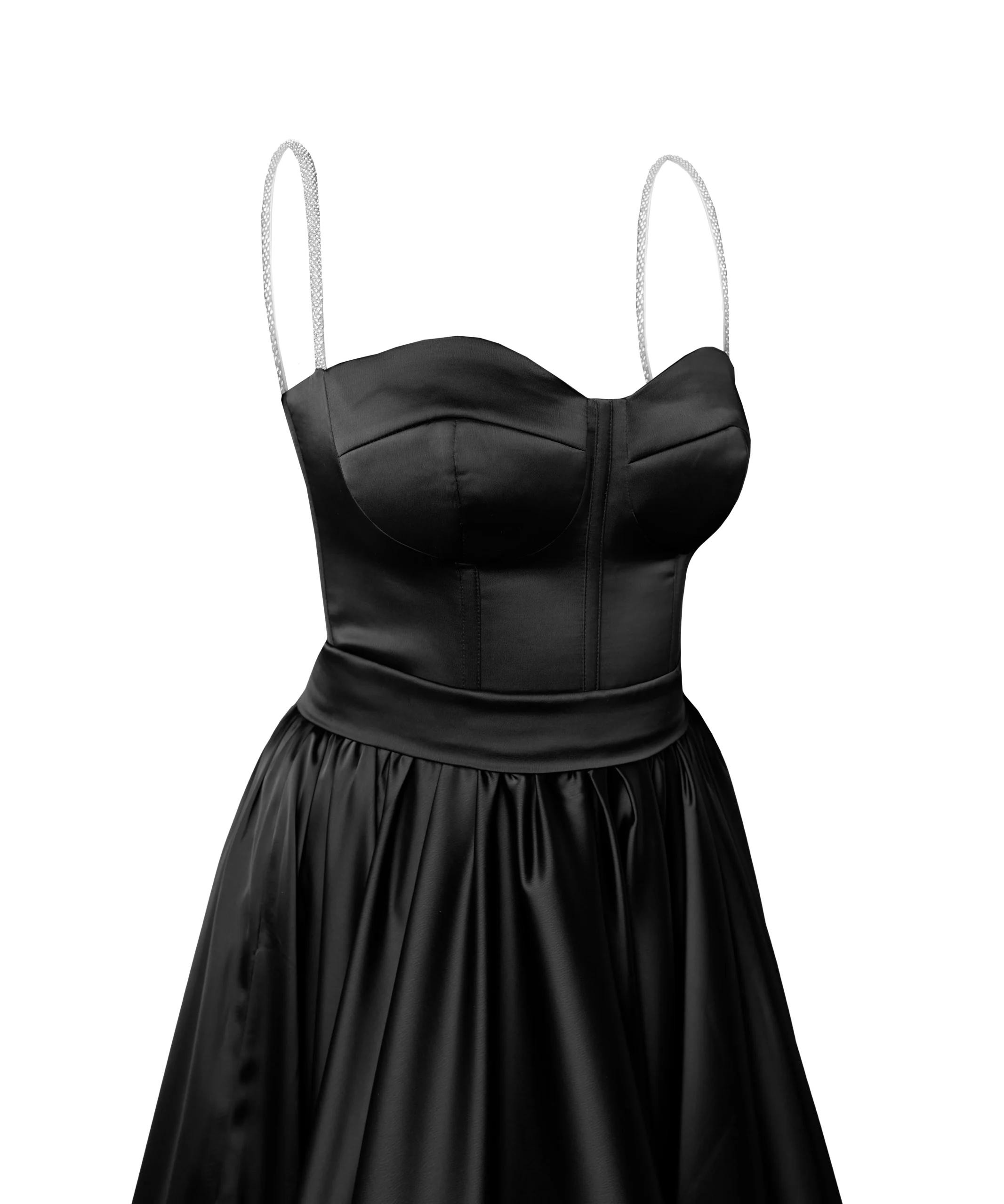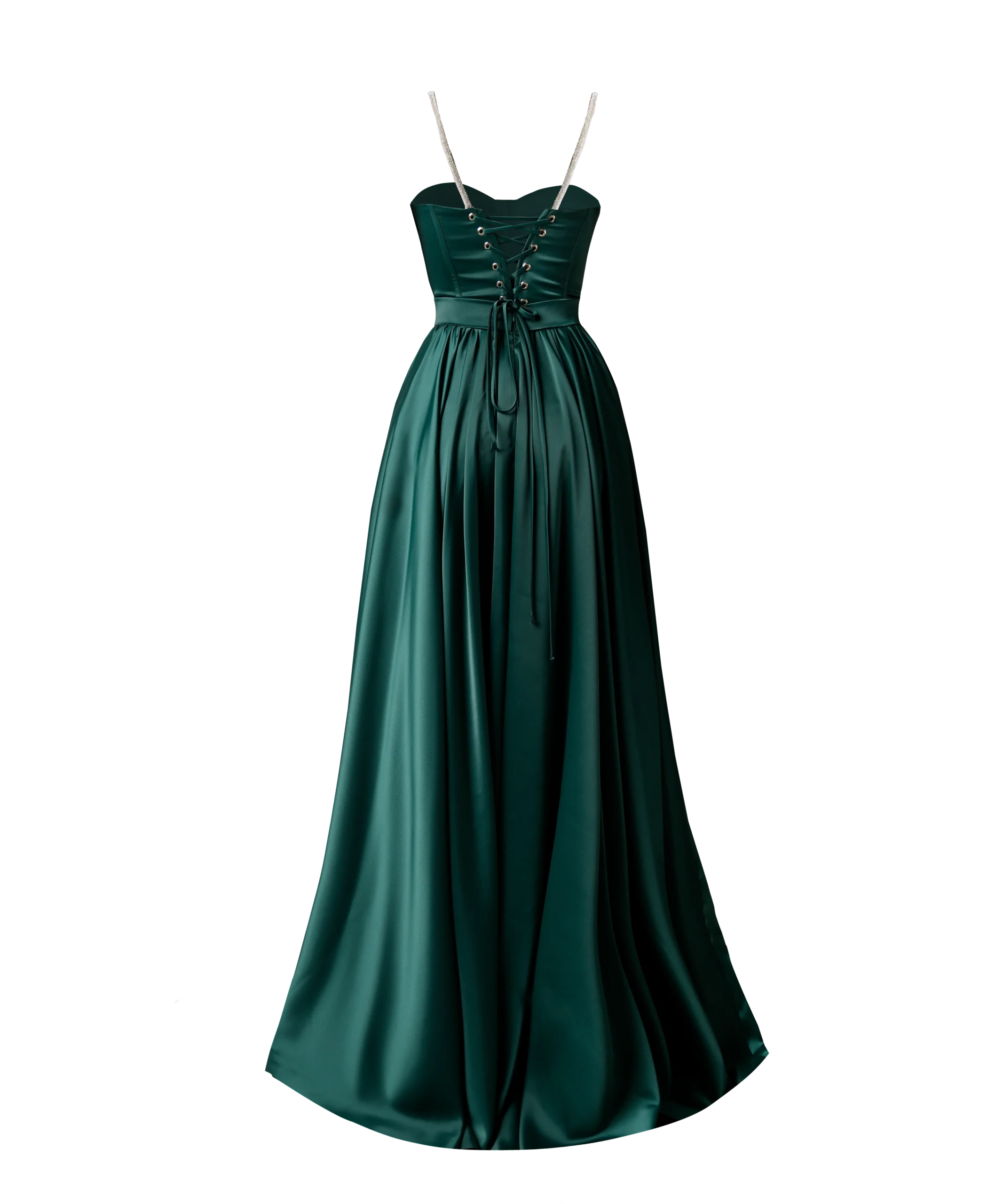 پيراهن ماكسی آذین از جنس ساتن سیلک باکیفیت تهیه شده و با نگینهای ظریف تزیین شده است که جلوهای مجلل و چشمنواز به آن میبخشد.