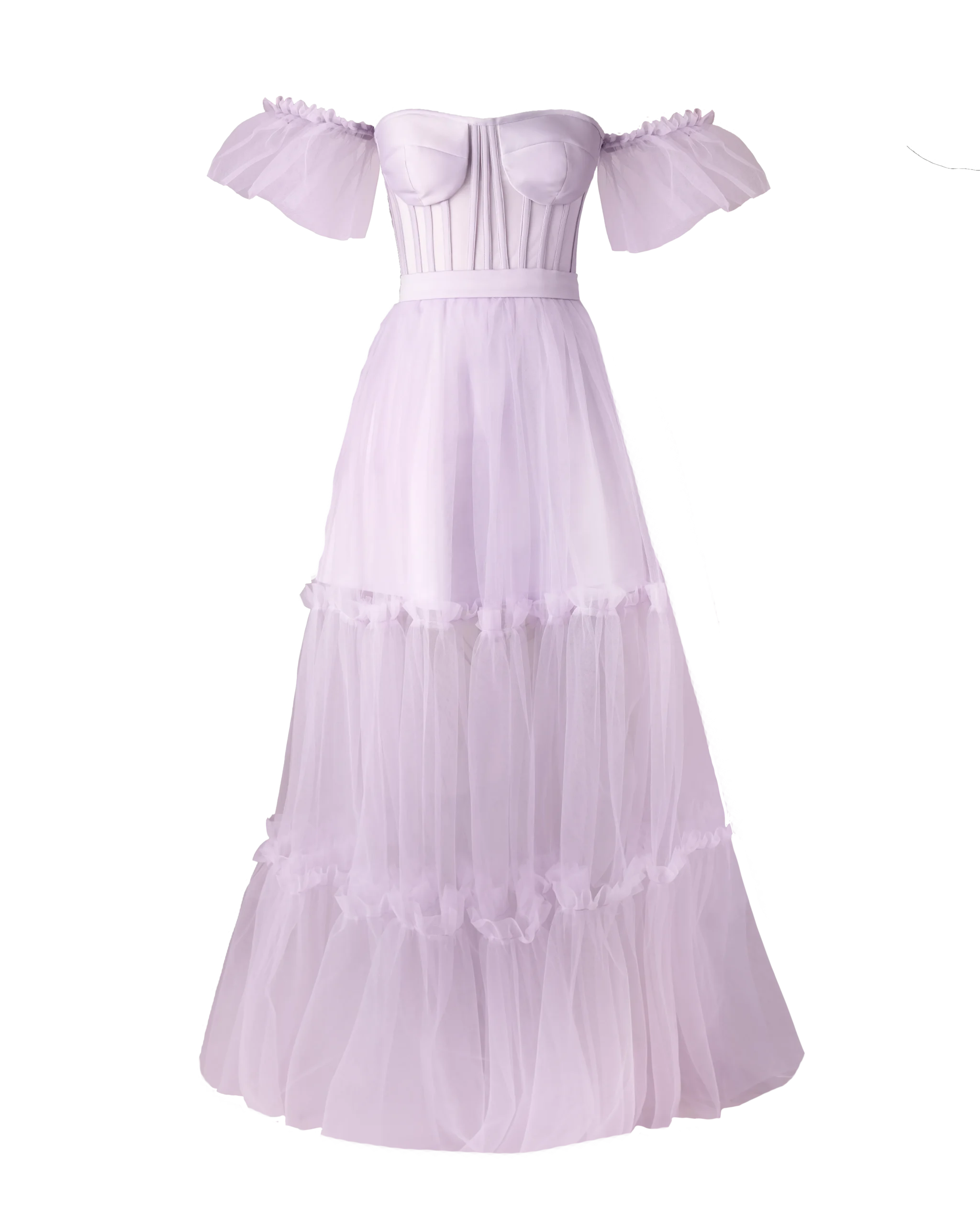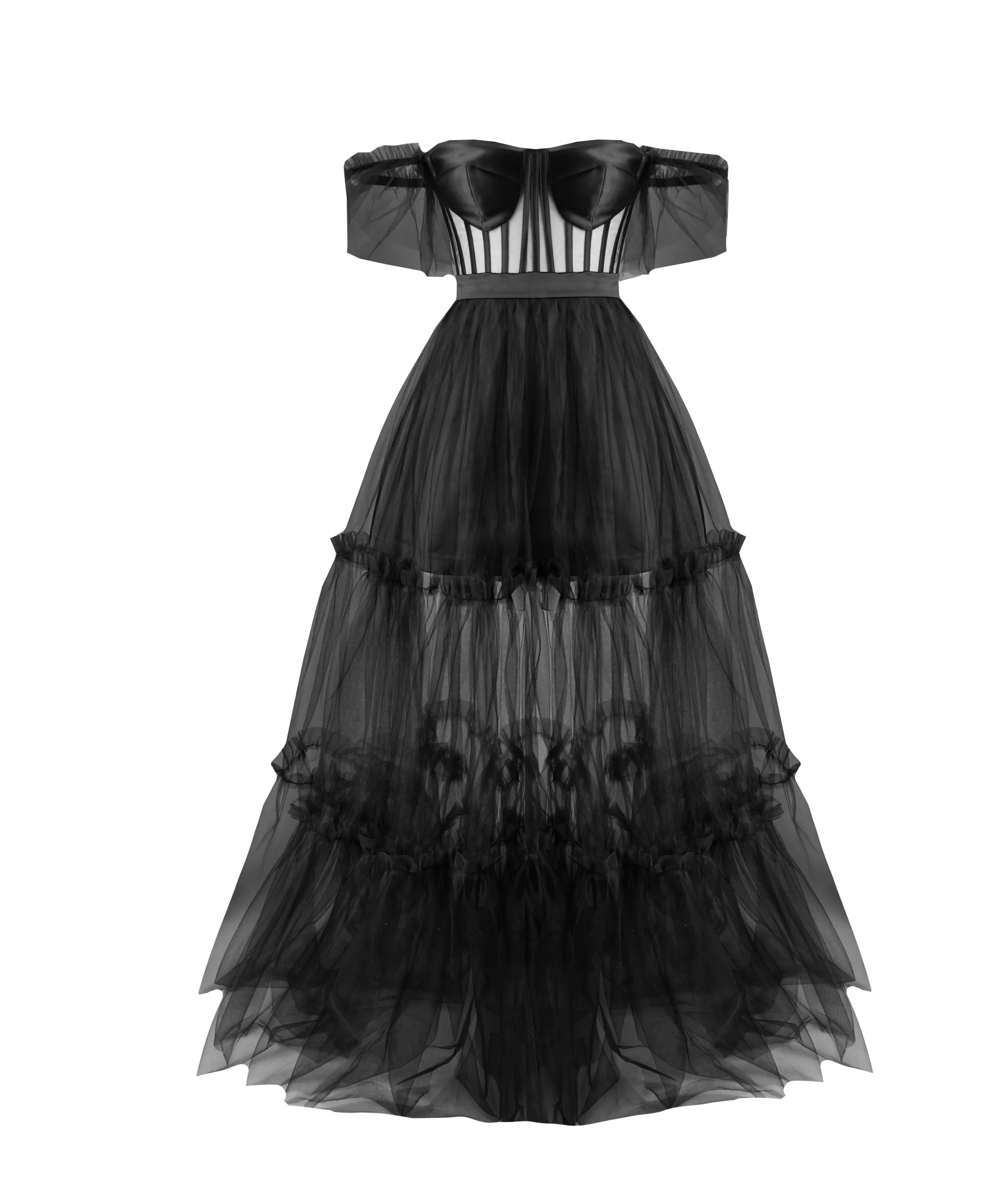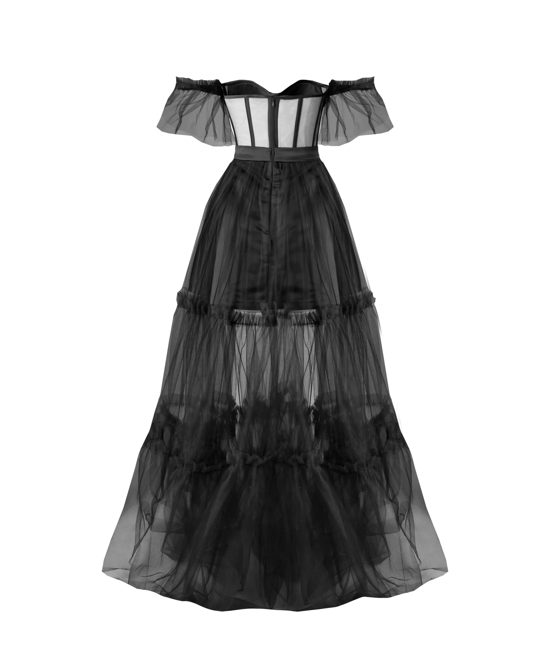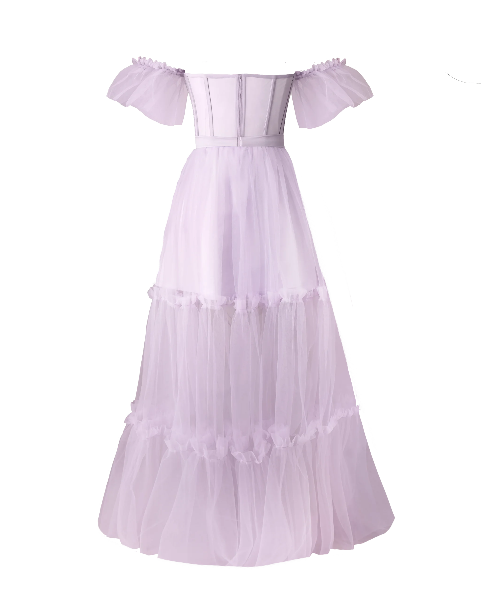 آستری دامن کوتاه: آستری دامن کوتاه این پیراهن، به شما این امکان را میدهد تا با آزادی کامل حرکت کنید و نگران شفافیت تور دامن نباشید.