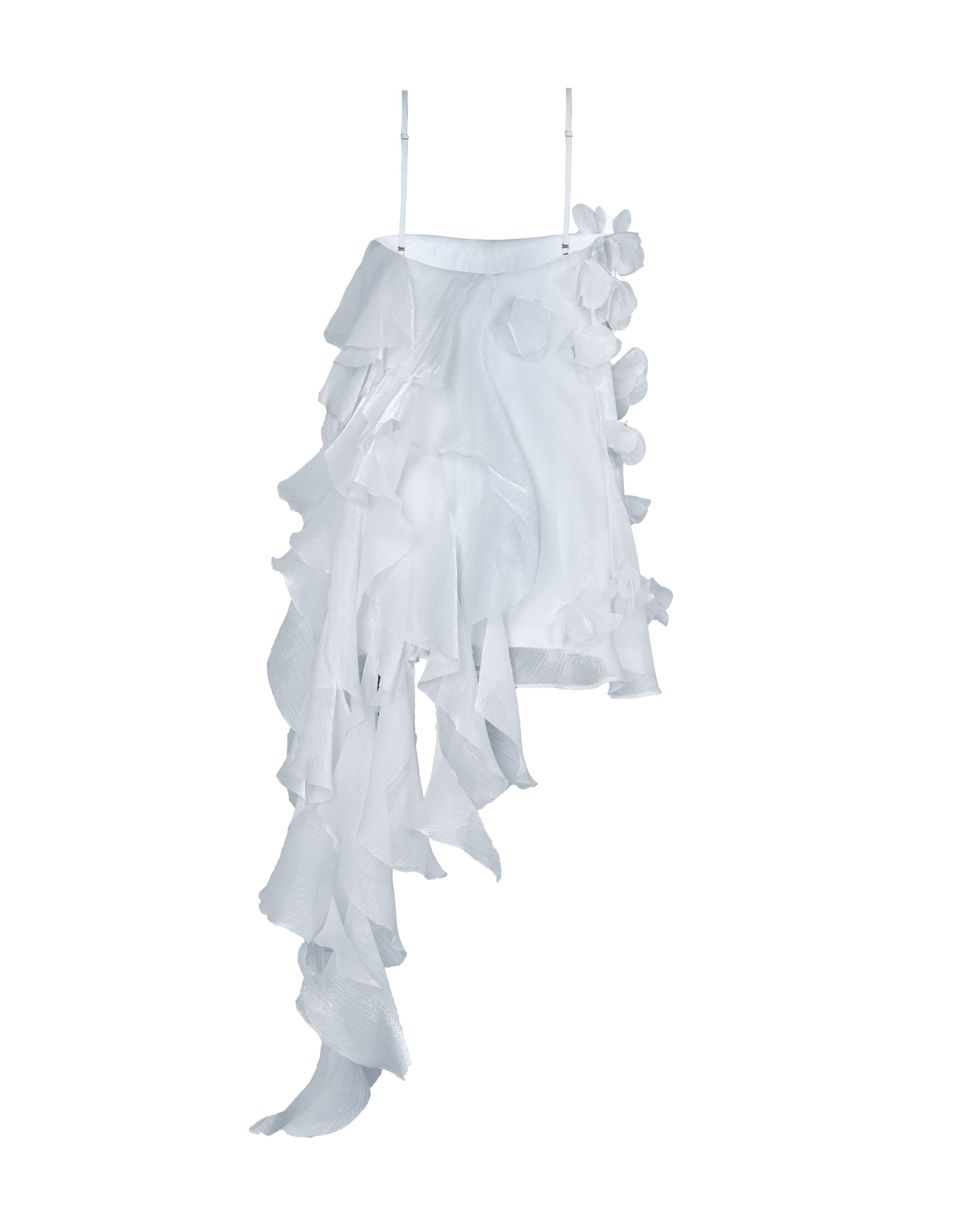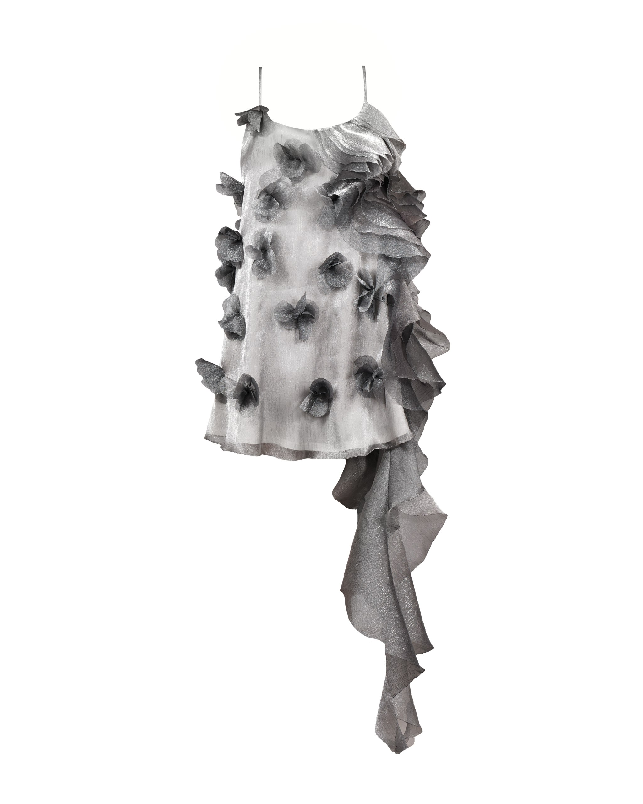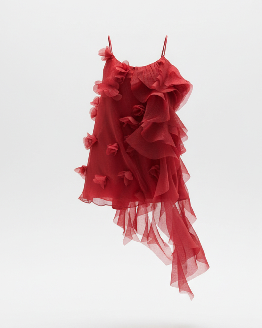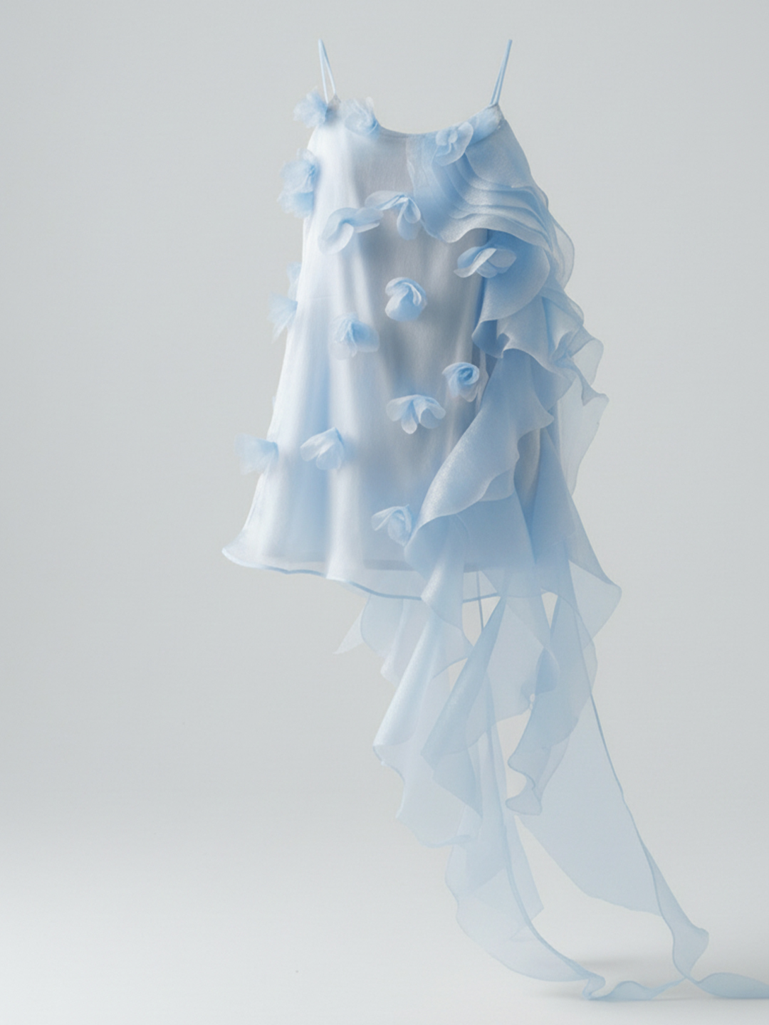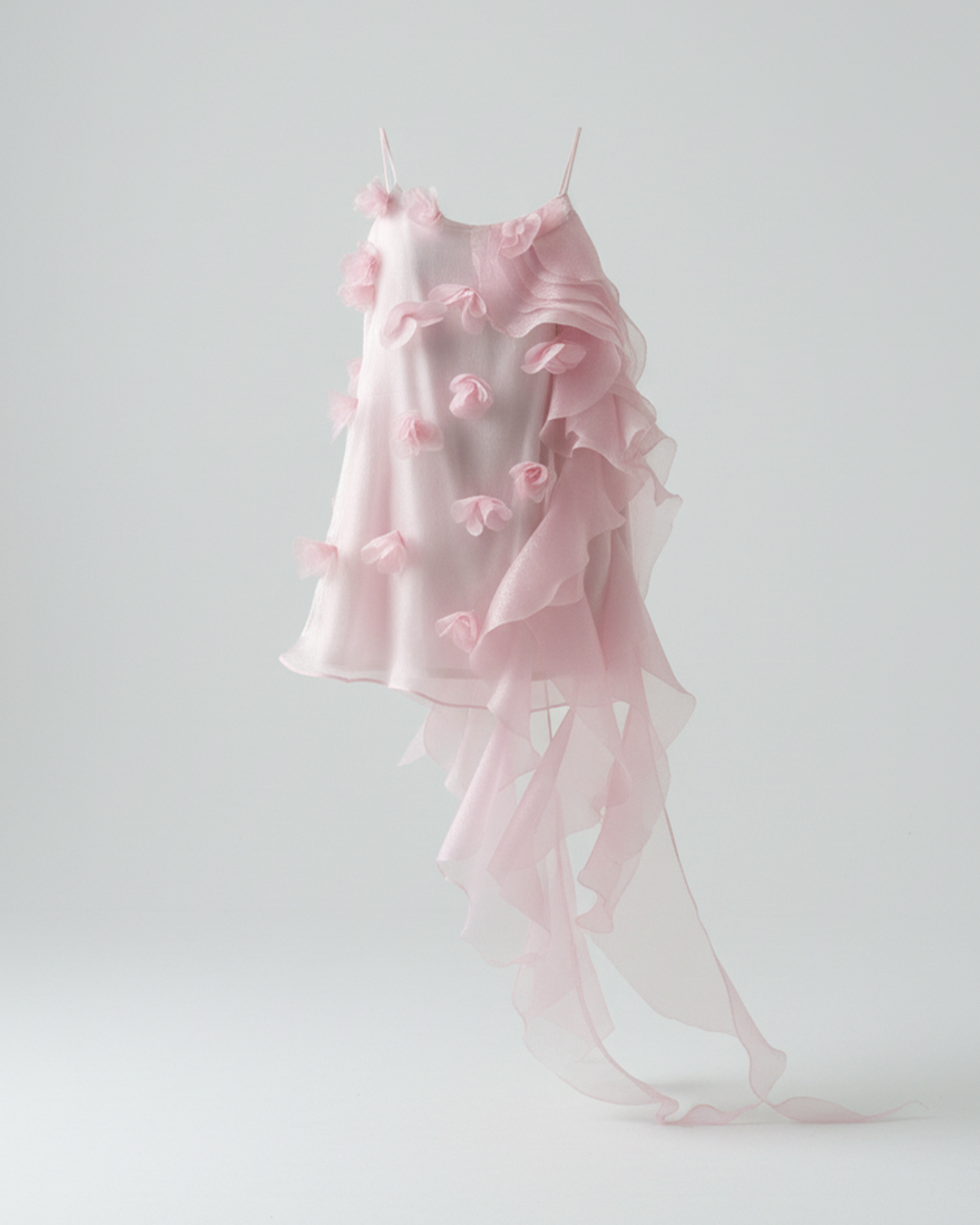 2. پارچه خاص و باکیفیت – حریر ارگانزا: جنس این پیراهن از حریر ارگانزا است؛ پارچهای لطیف، نیمهشفاف و مقاوم که در عین سبکی، ساختار ایستاده و زیبایی به لباس میدهد. این نوع پارچه باعث میشود پیراهن فرم خود را بهخوبی حفظ کرده و در عین حال حس لطافت و خنکی را به پوست منتقل کند – ایدهآل برای استفاده در مجالس تابستانی و بهاری.