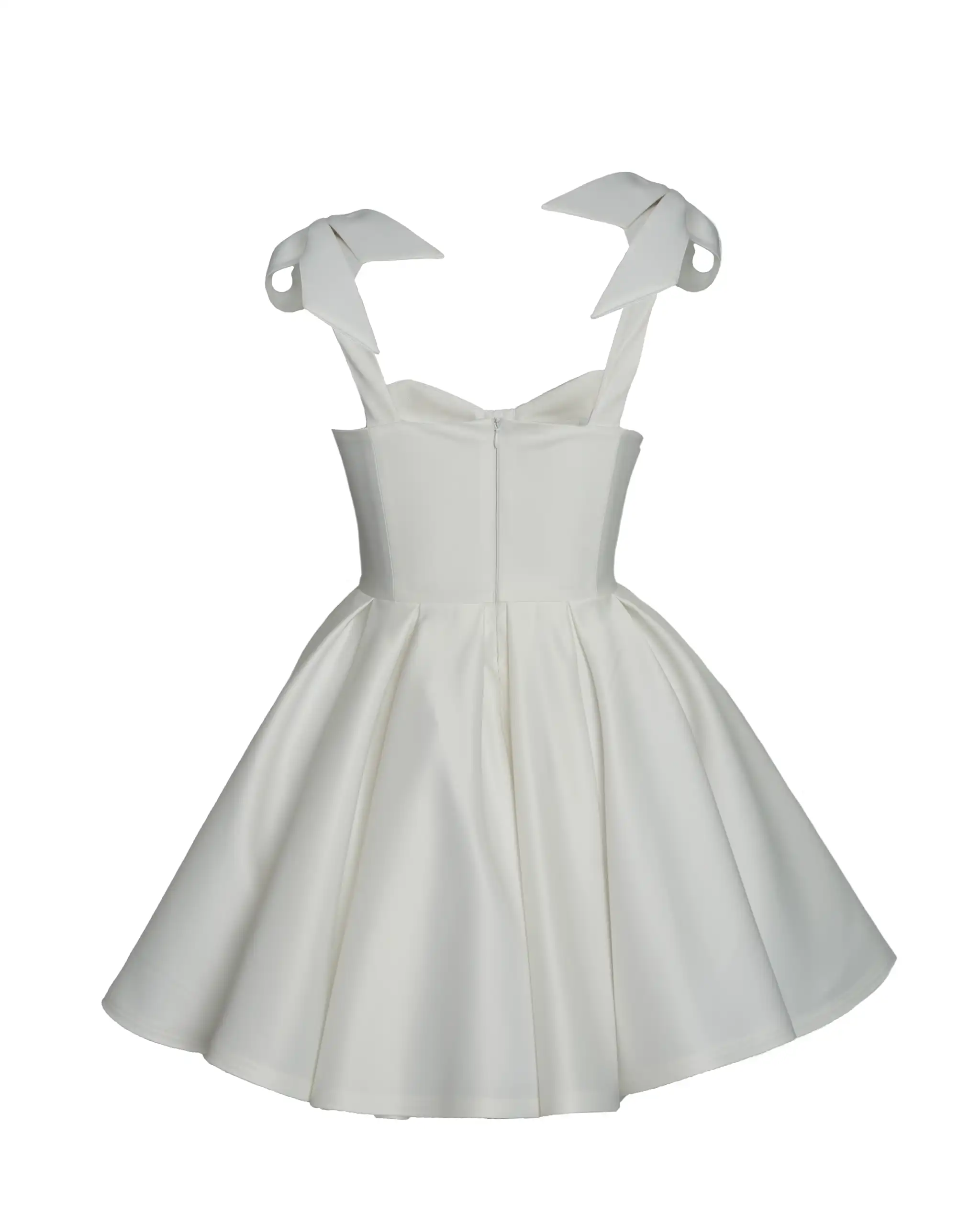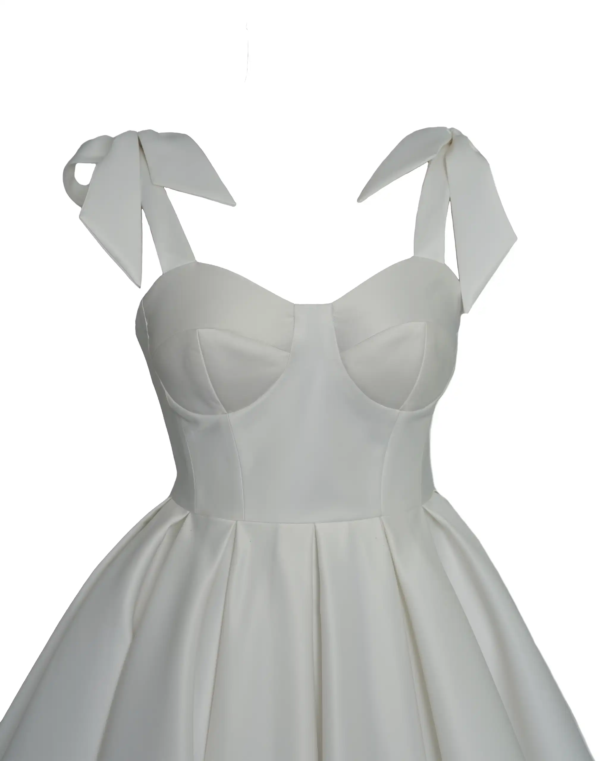 پیراهن دلوان سفید ، با طراحی خاص و زیبای خود، گزینهای ایدهآل برای مراسمهای تولد، مهمانی و عروسی است. این پیراهن دارای کمر فون و سرشانههایی با طراحی پاپییون است که به آن جلوهای خاص و جذاب میبخشد.