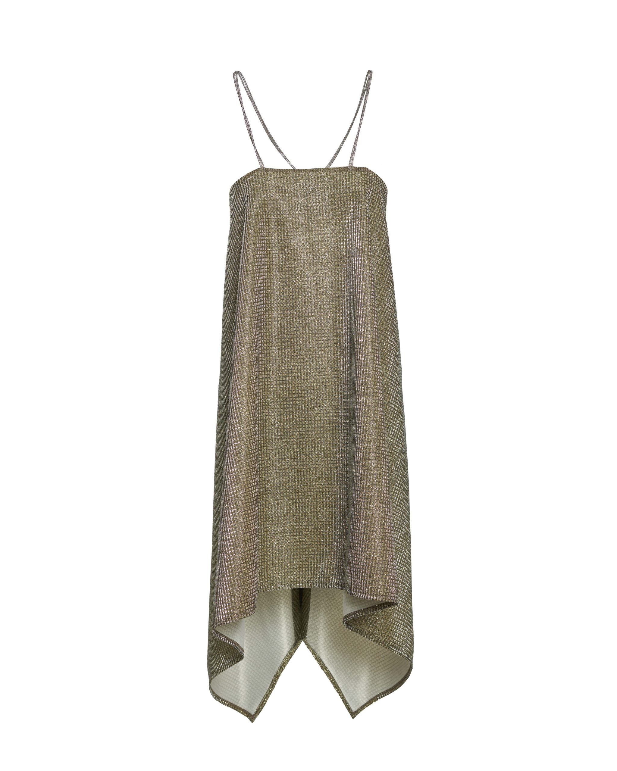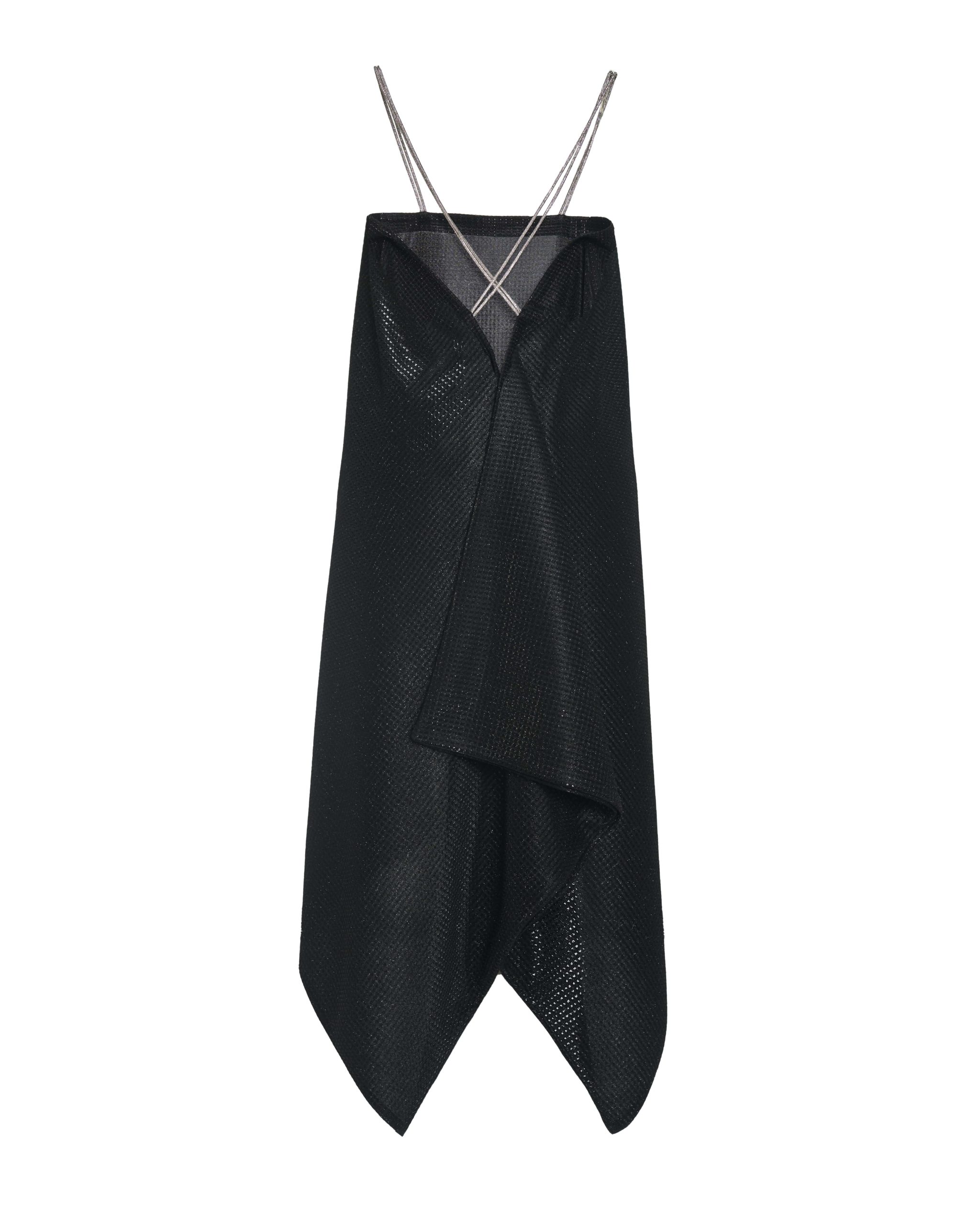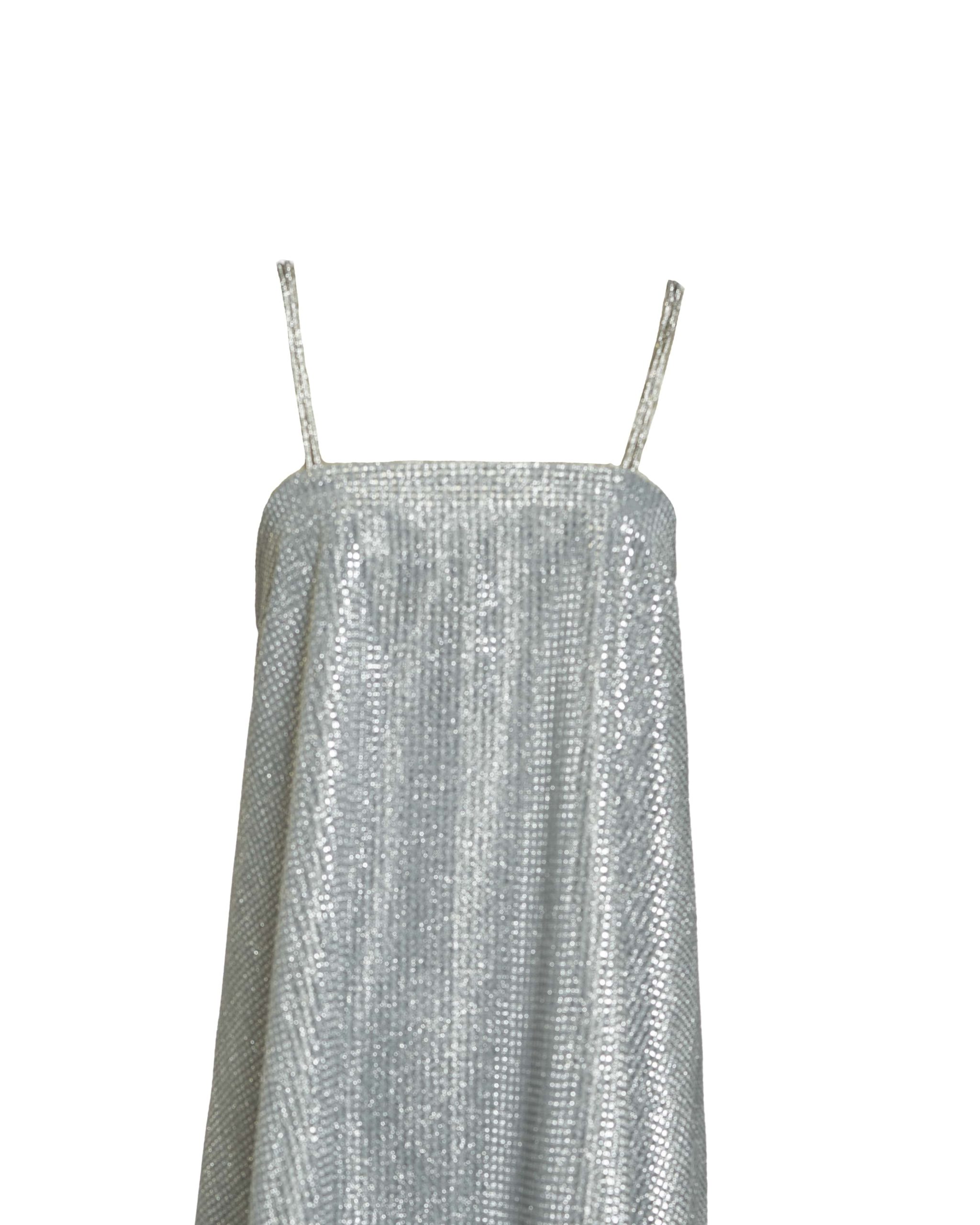 - جزئیات نقرهای: چهار بند نقرهای ضربدری شکل در پشت این لباس مجلسی، جزئیاتی منحصر به فرد به آن افزودهاند. این جزئیات نه تنها به زیبایی کلی لباس افزودهاند بلکه باعث شدهاند تا پیراهن رها یکی از لباسهای منحصر به فرد و دیدنی باشد.