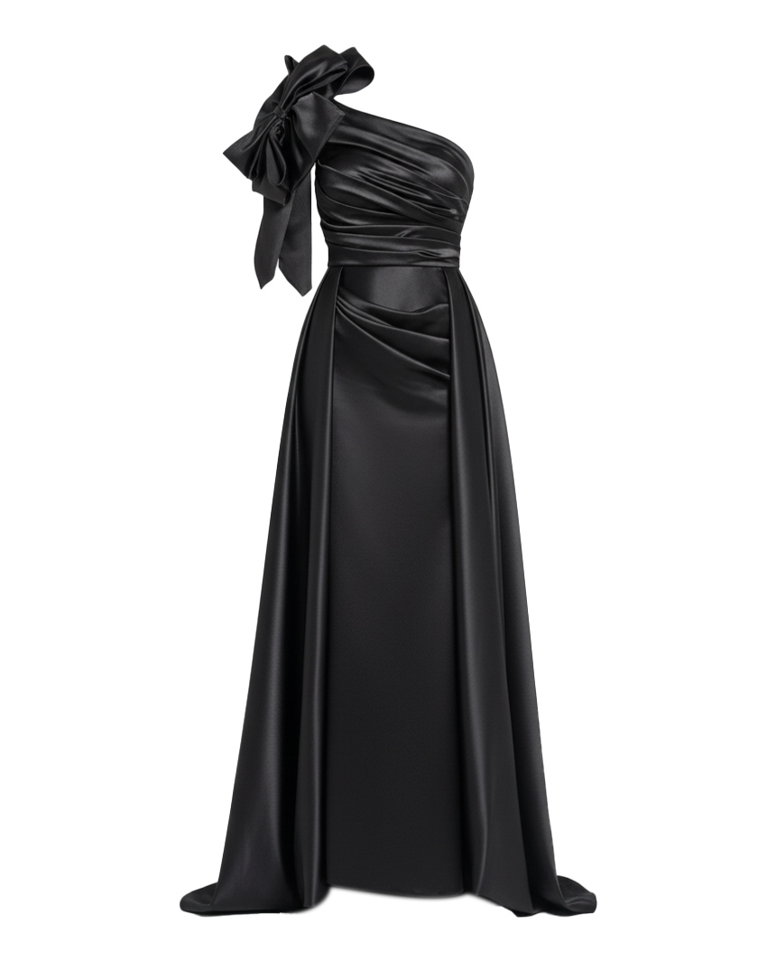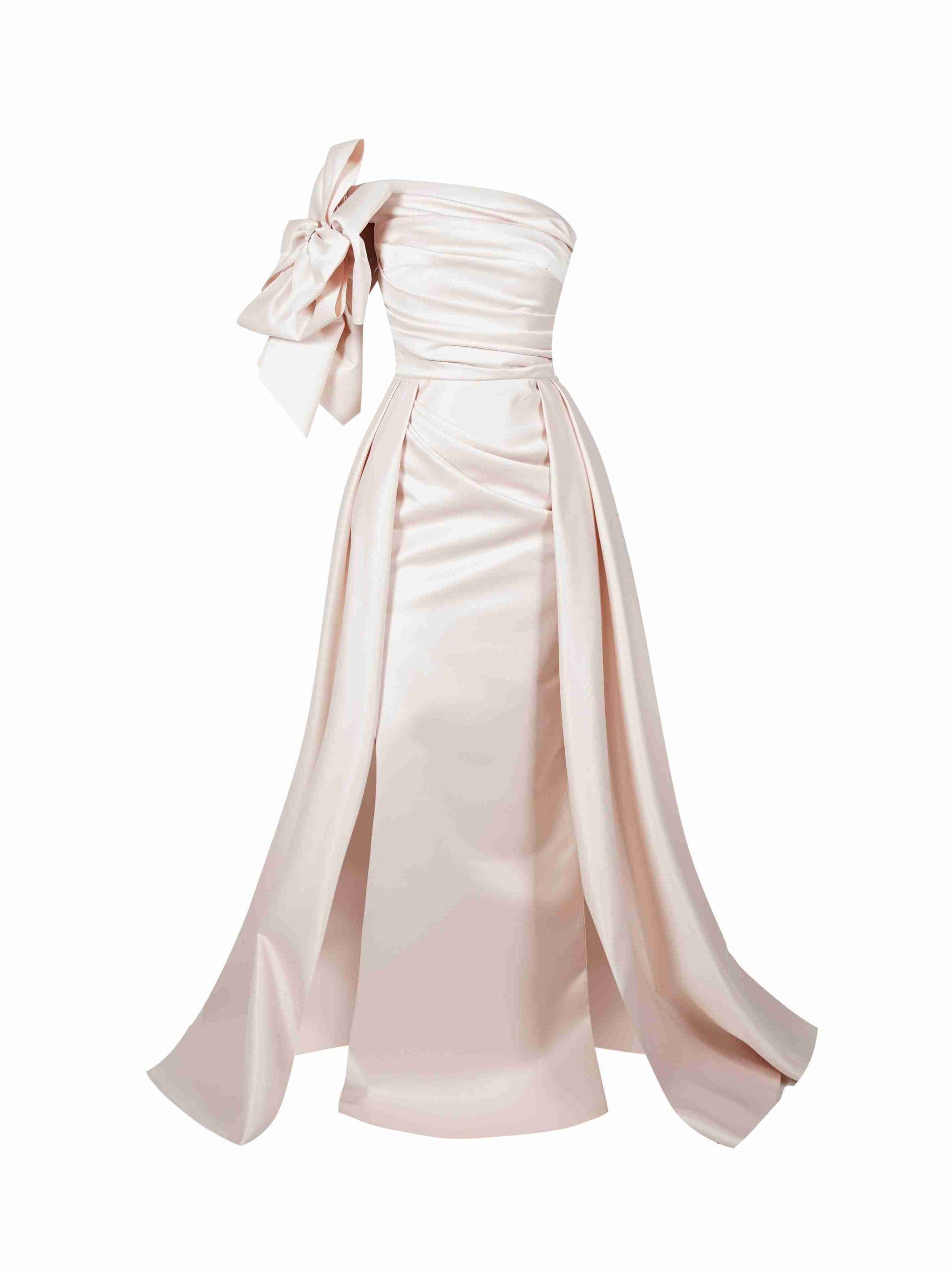 پیراهن ساتن ماکسی اریس، دارای سرشانه پاپیونی زیبا است، که به شما حس زنانگی و اشرافی میدهد.