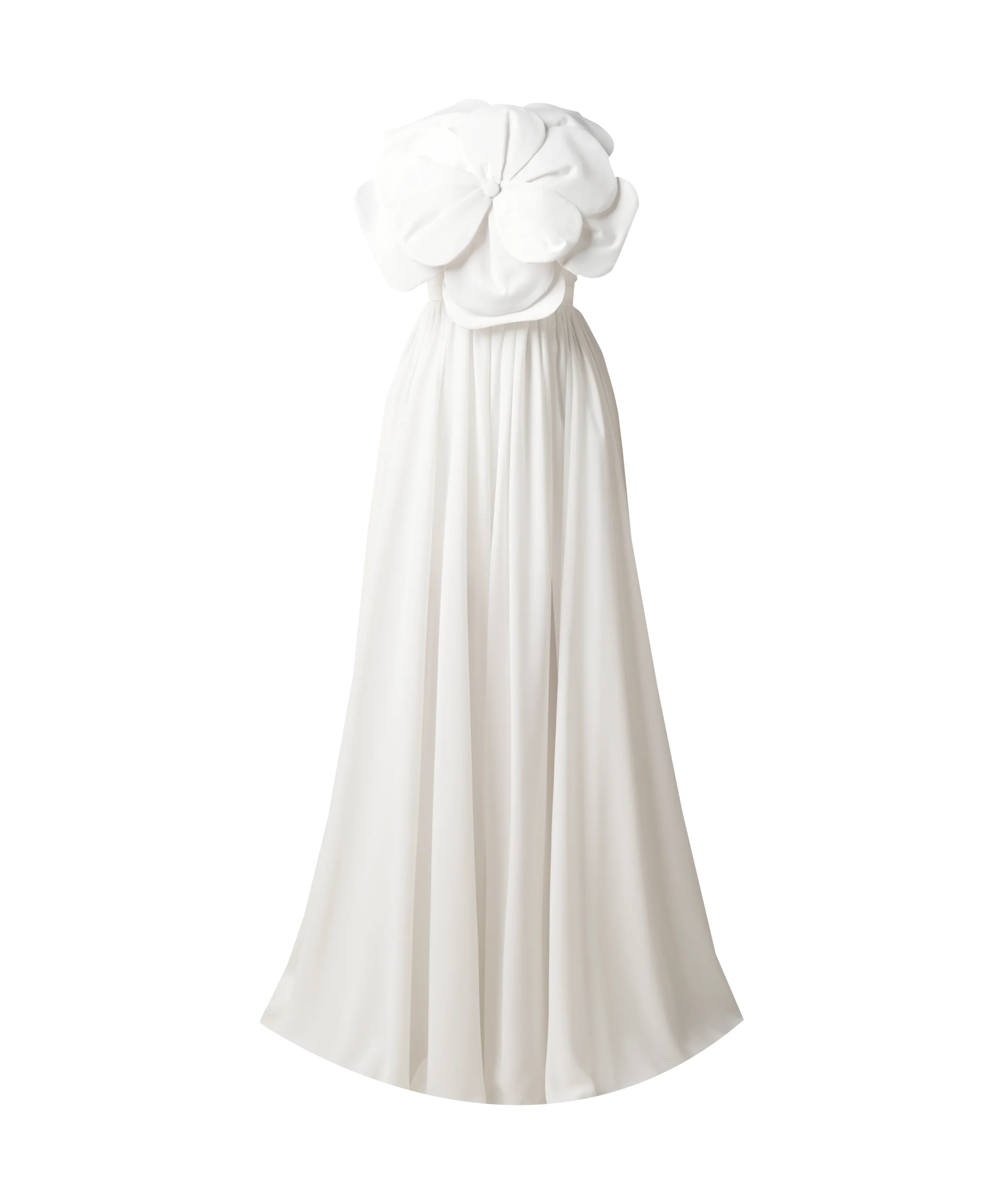 سمفونی گلهای ساتن در پیراهن ماکسی آریان