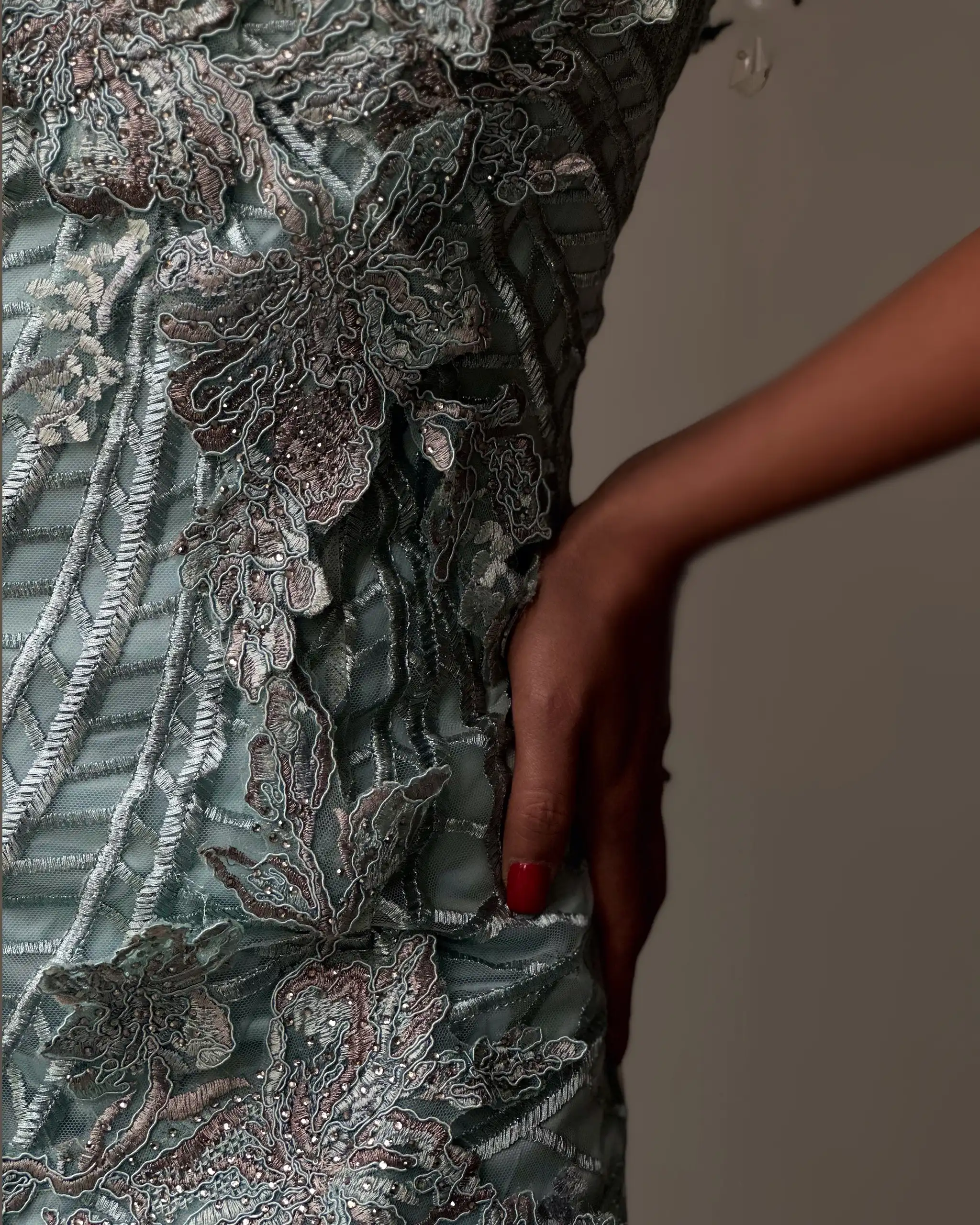 پیراهن ماکسی دانتل رویا با یقه دکلته، یک انتخاب فوقالعاده برای زنانی است که به دنبال یک لباس خاص و مجلل هستند. این پیراهن با الگو ماهی و اندامی، جزو لباسهای بینظیری است که برای مهمانیها، مراسمها و مناسبتهای شبانه بسیار مناسب است. این لباس از تور با کیفیت تولید شده و سراسر آن با دقت، زیبایی و ظرافت دانتلدوزی شده است.