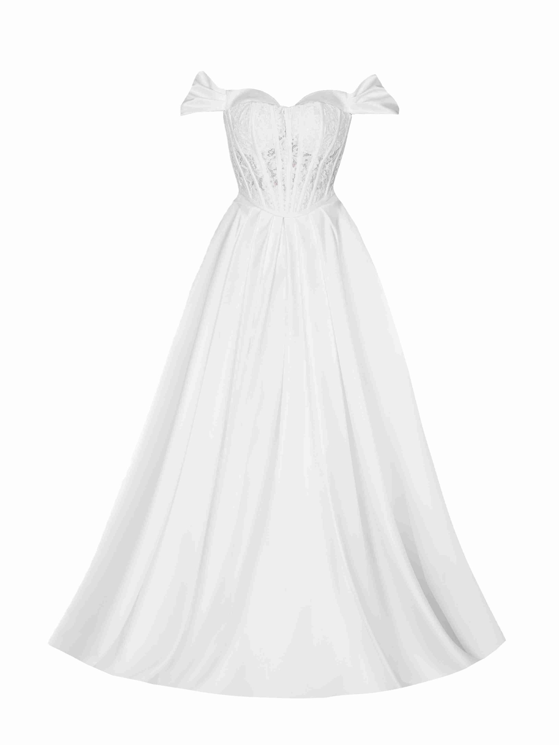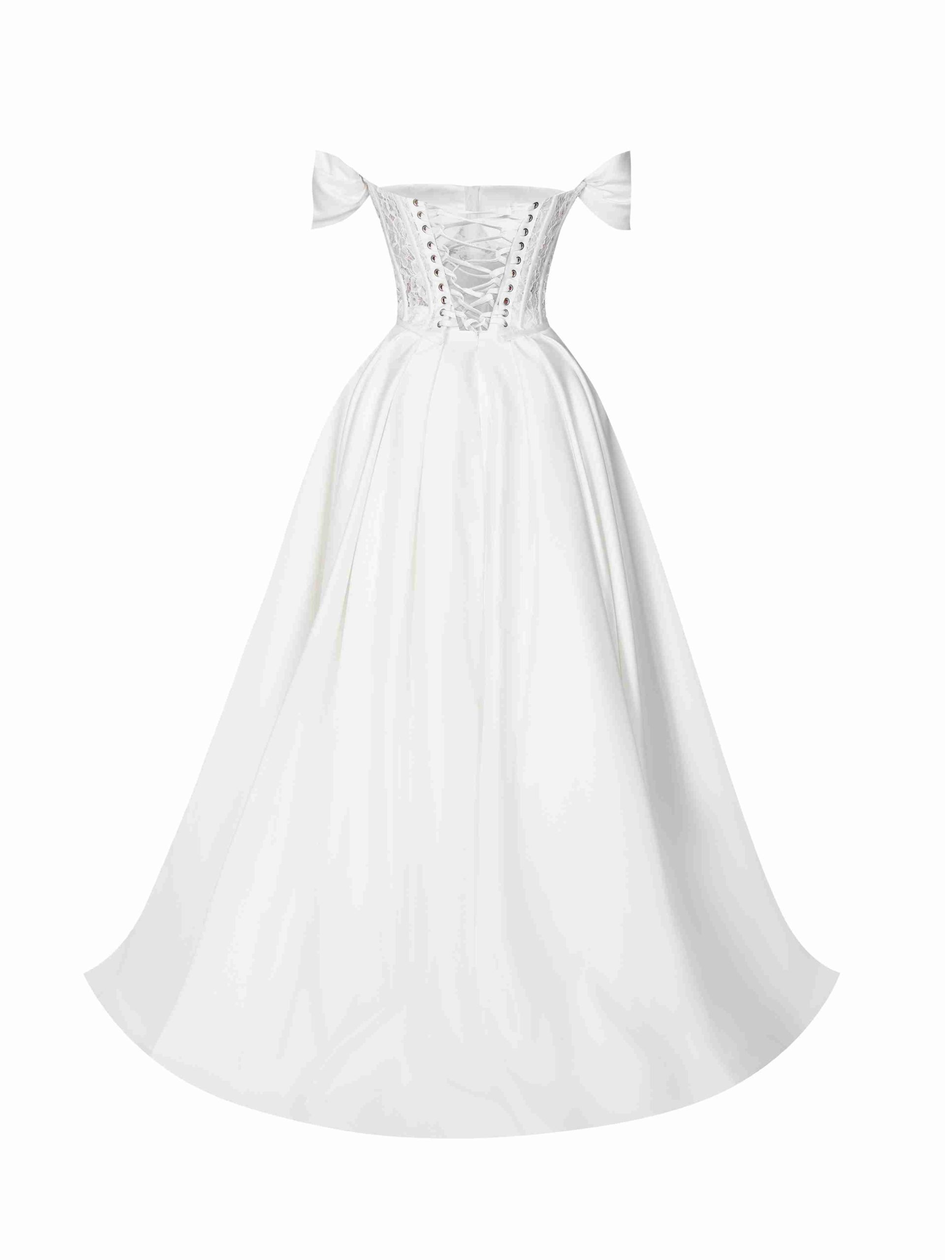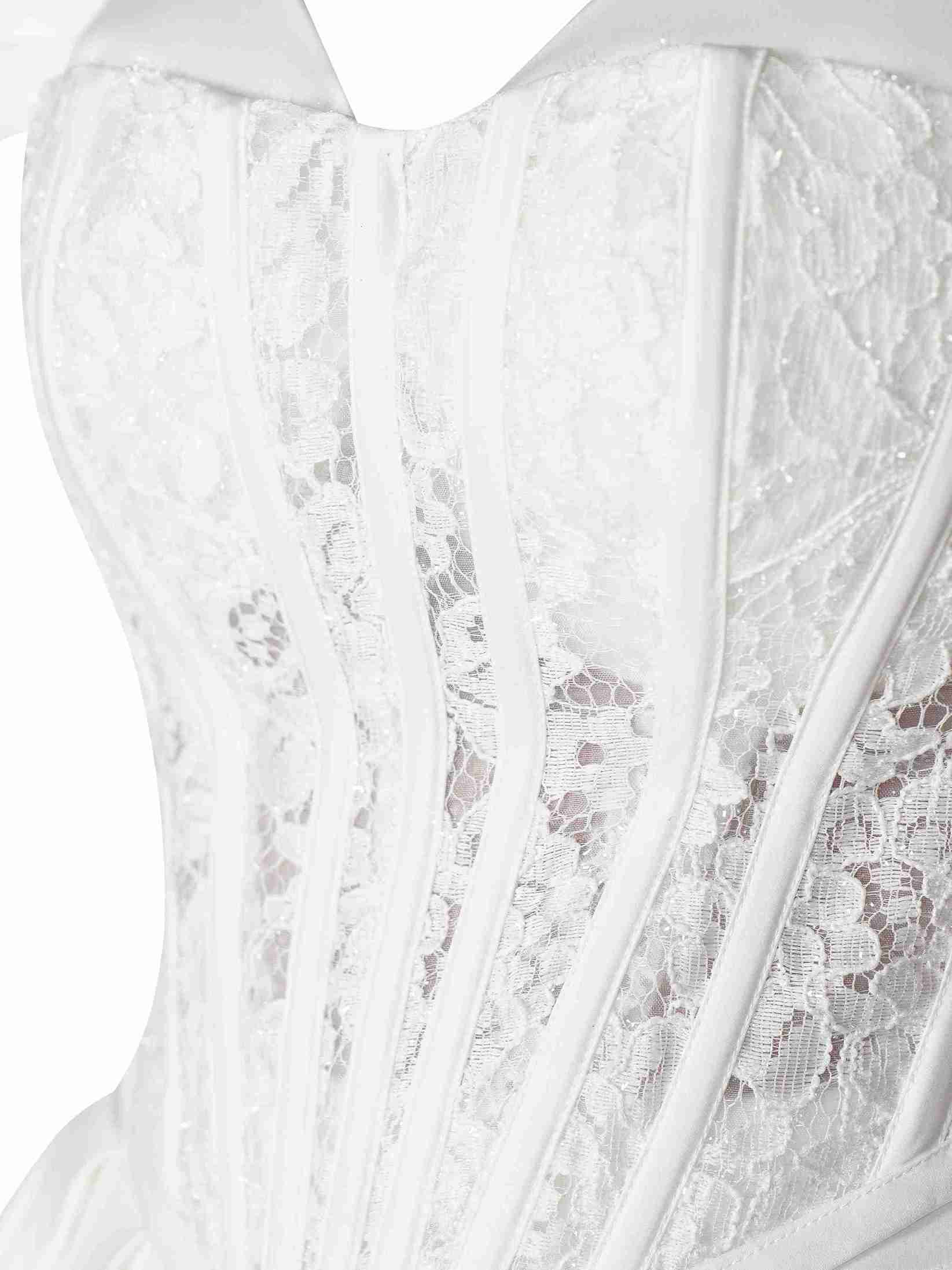 • درخشش و ظرافت: ترکیب ساتن آمریکایی و گیپور شاین دار باعث می‌شود پیراهن در نور به زیبایی بدرخشد و جلوه‌ای خاص پیدا کند که در روز عروسی شما بی‌نظیر است