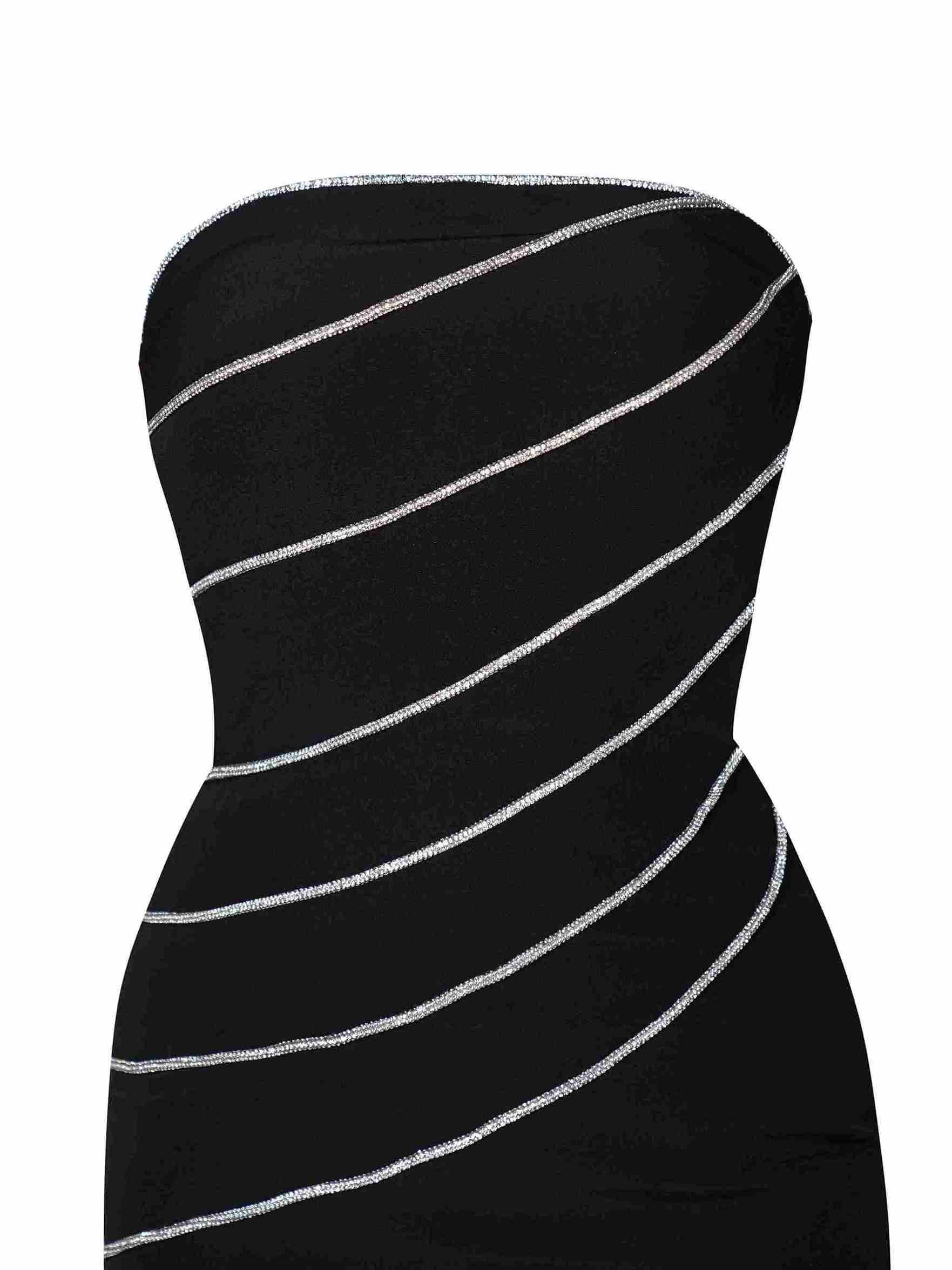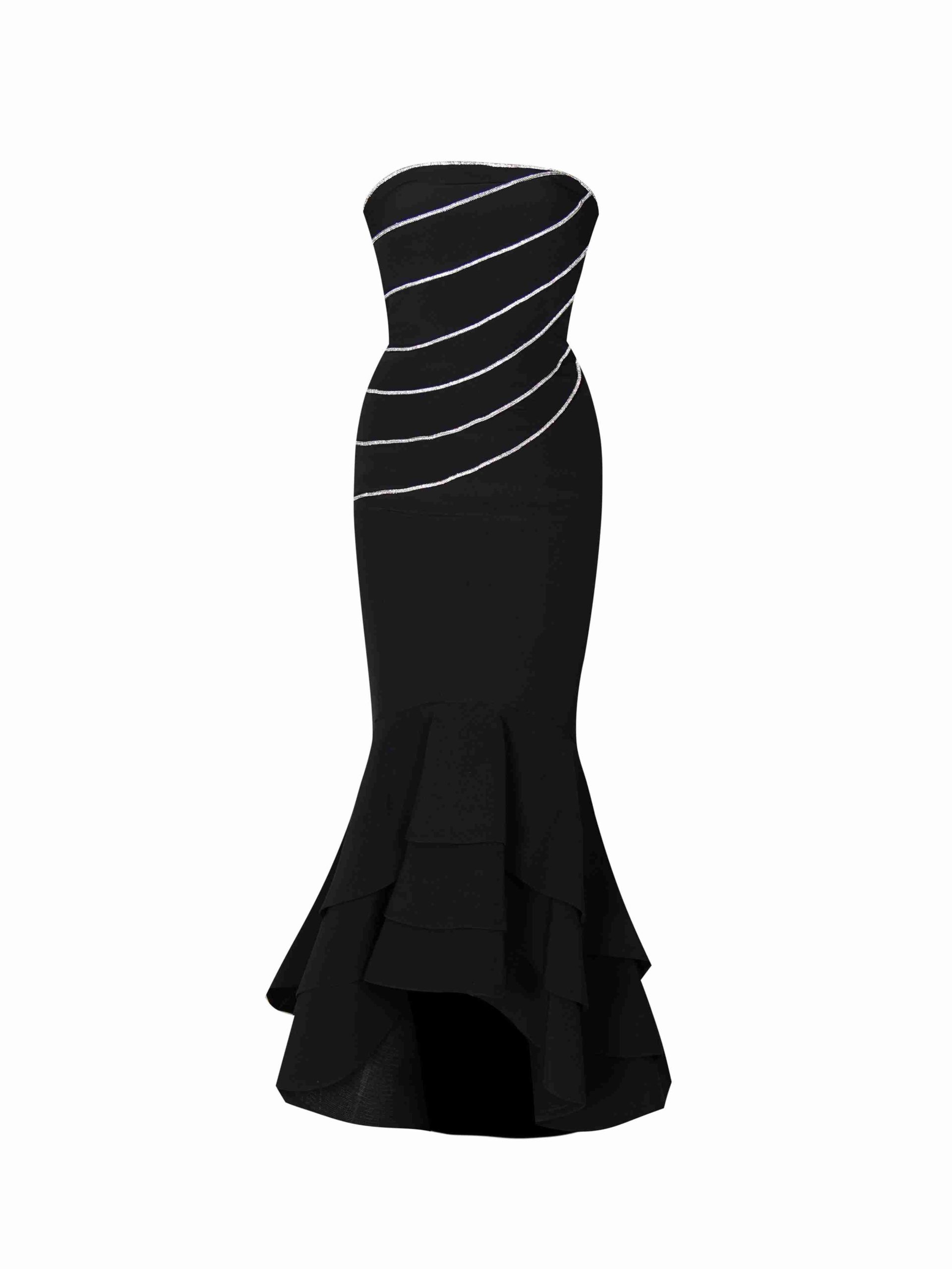 - ترکیب ظرافت و درخشش: استفاده از نگینهای سواروسکی باعث میشود که لباس در نور، جلوهای بینظیر و خاص داشته باشد