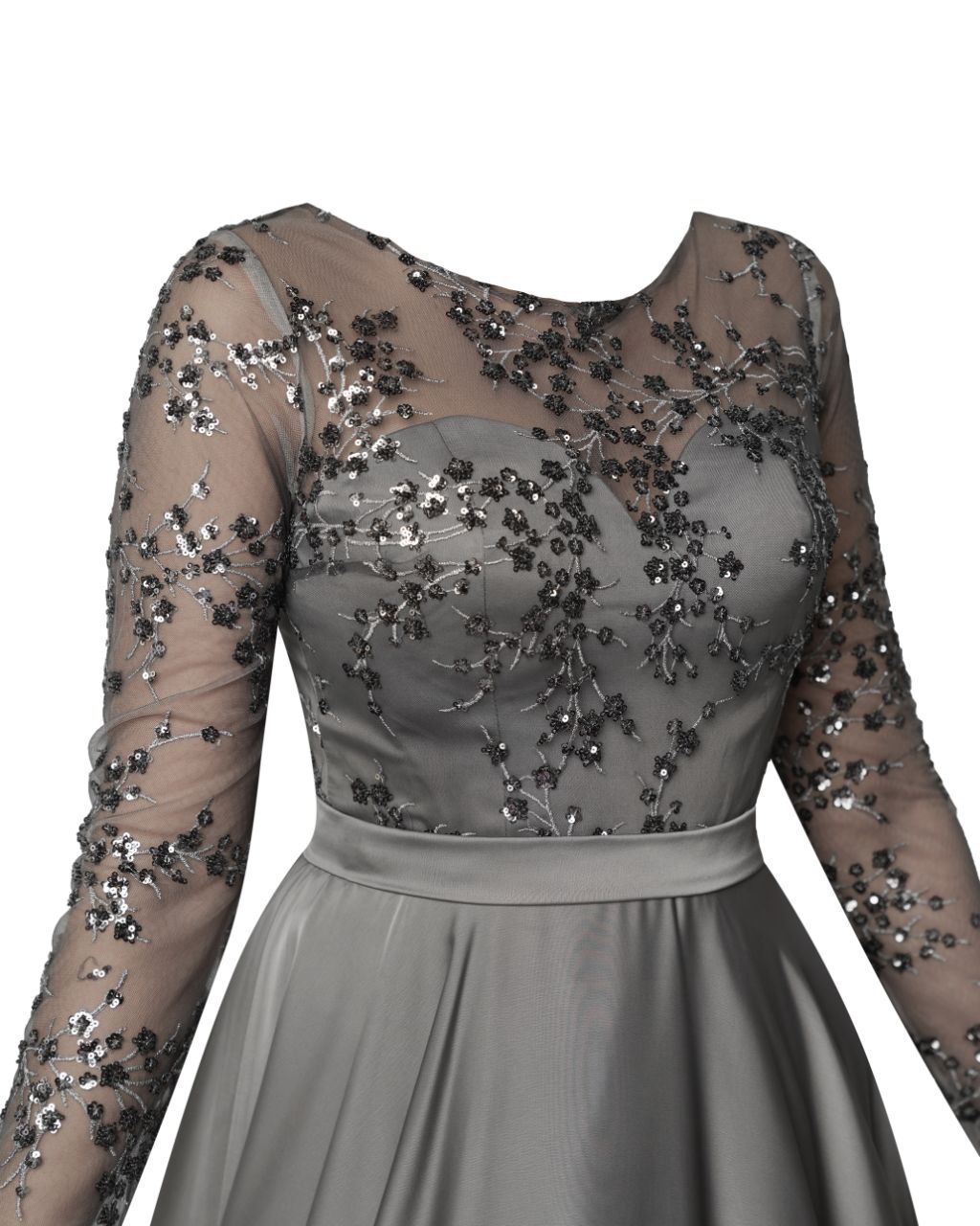 - ساتن سیلک و پولک شکوفهای: این ترکیب بینظیر، به پیراهن ماکسی پریسا ظاهری لوکس و درخشان بخشیده است. ساتن سیلک، لطافت و روانی بینظیری را به شما هدیه میدهد و پولکهای شکوفهای، درخششی خاص به آن بخشیدهاند.