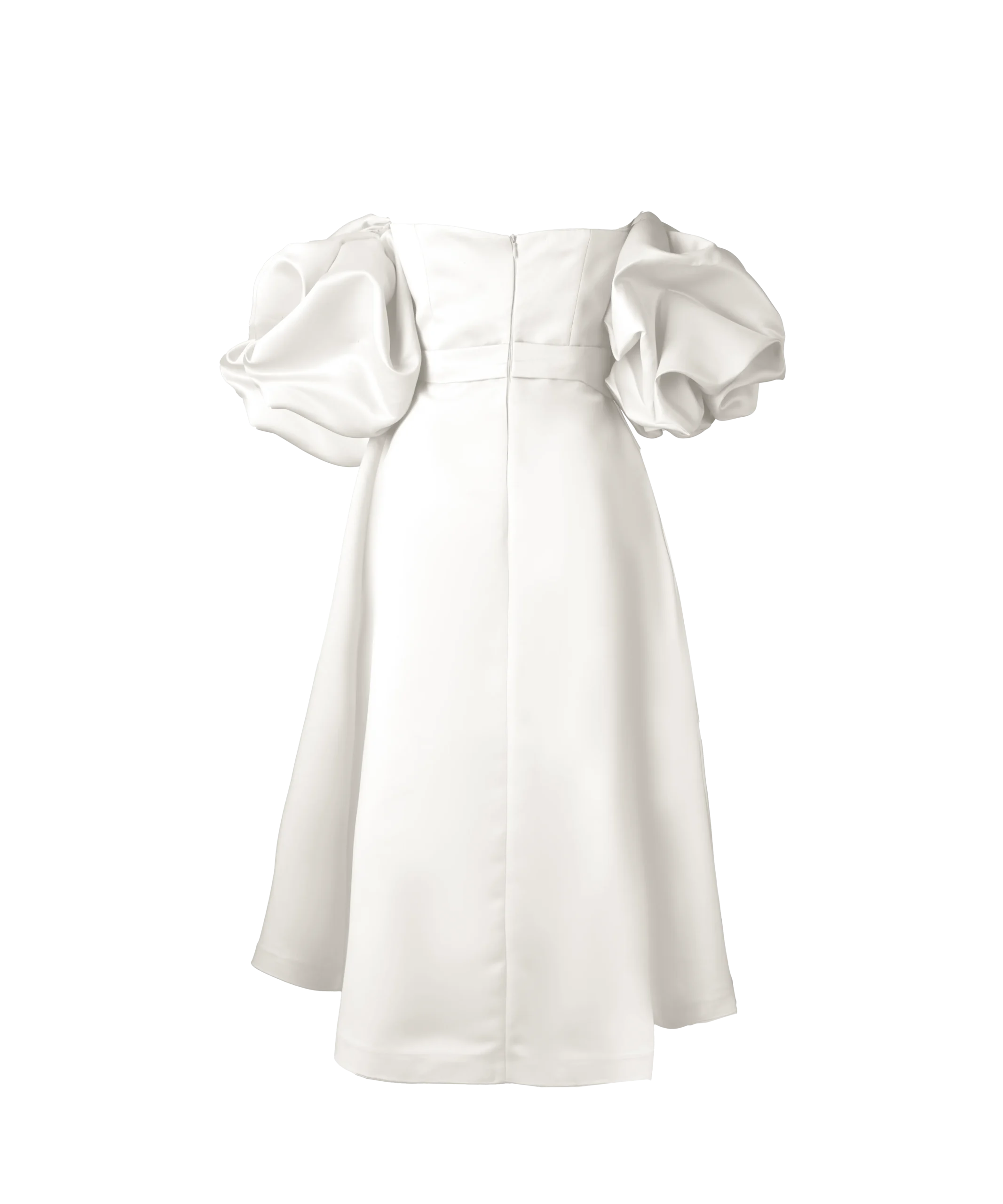 پیراهن میدی دکلته نازنین دارای آستینهای پفی است، که پایینتر از سرشانهها قرار میگیرد. در حالی که پیراهنهای مجلسی میتوانند آستینهای بلندتری داشته باشند، این مدل آستینها بسیار کلاسیک و منحصربهفرد هستند.
