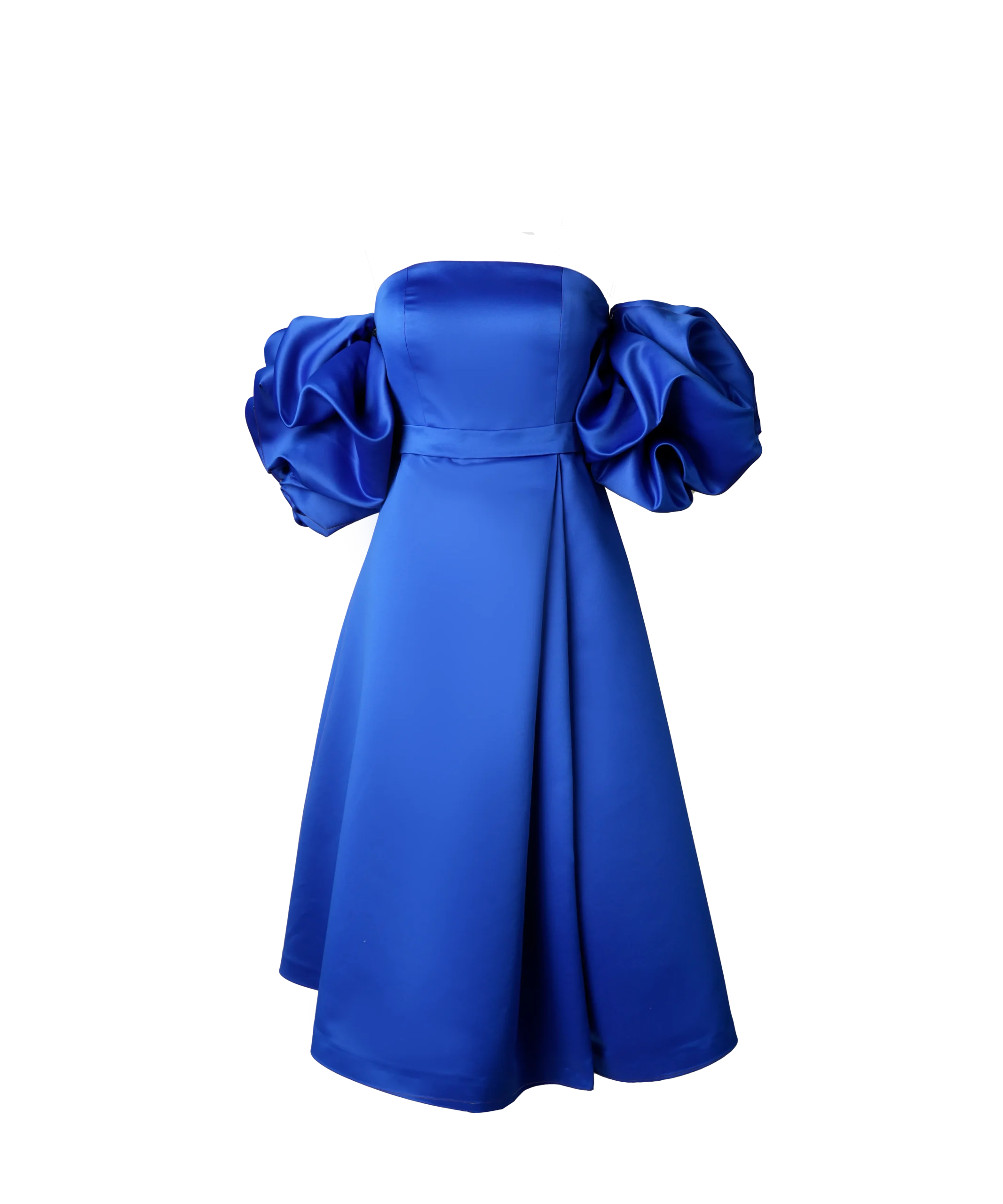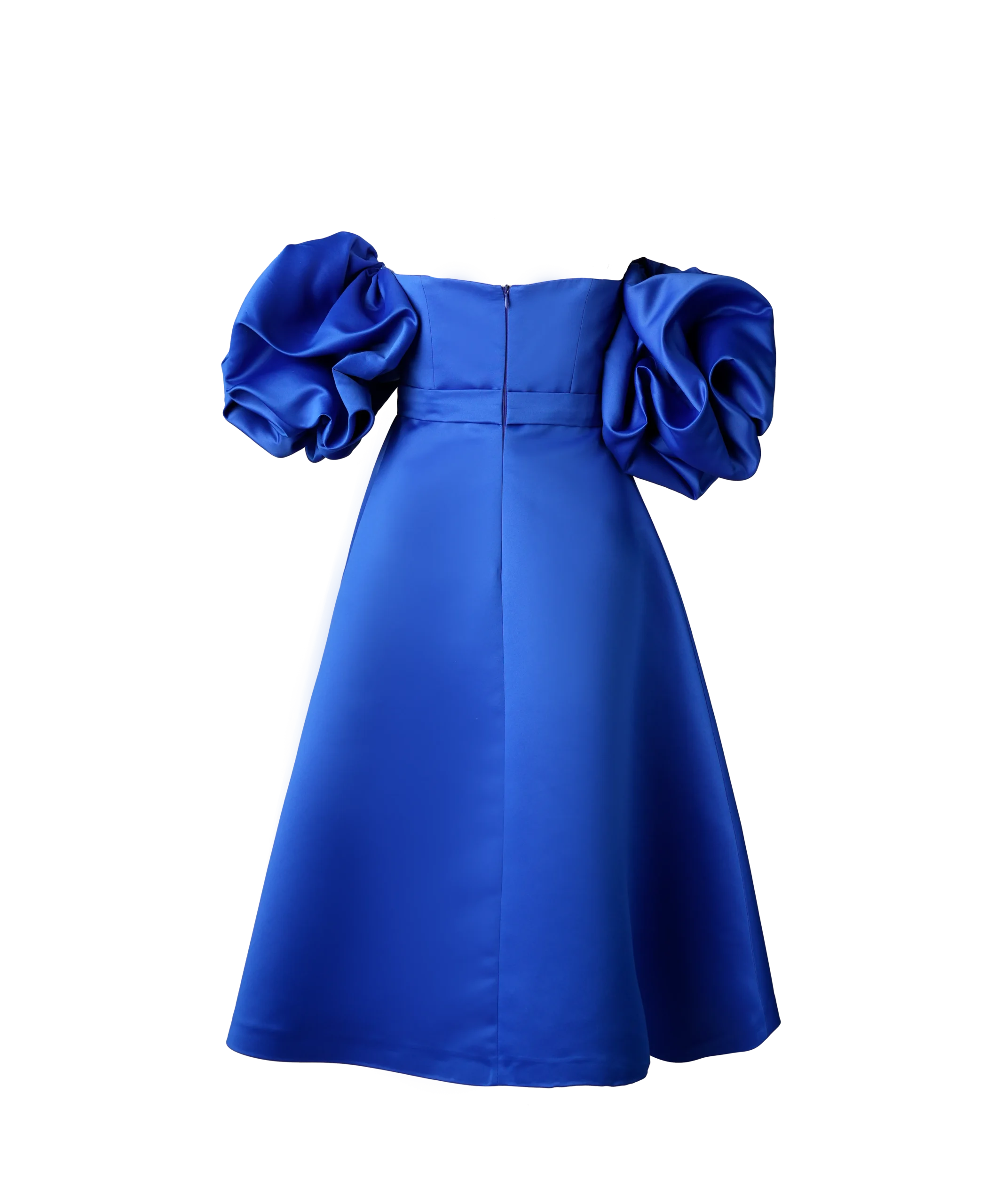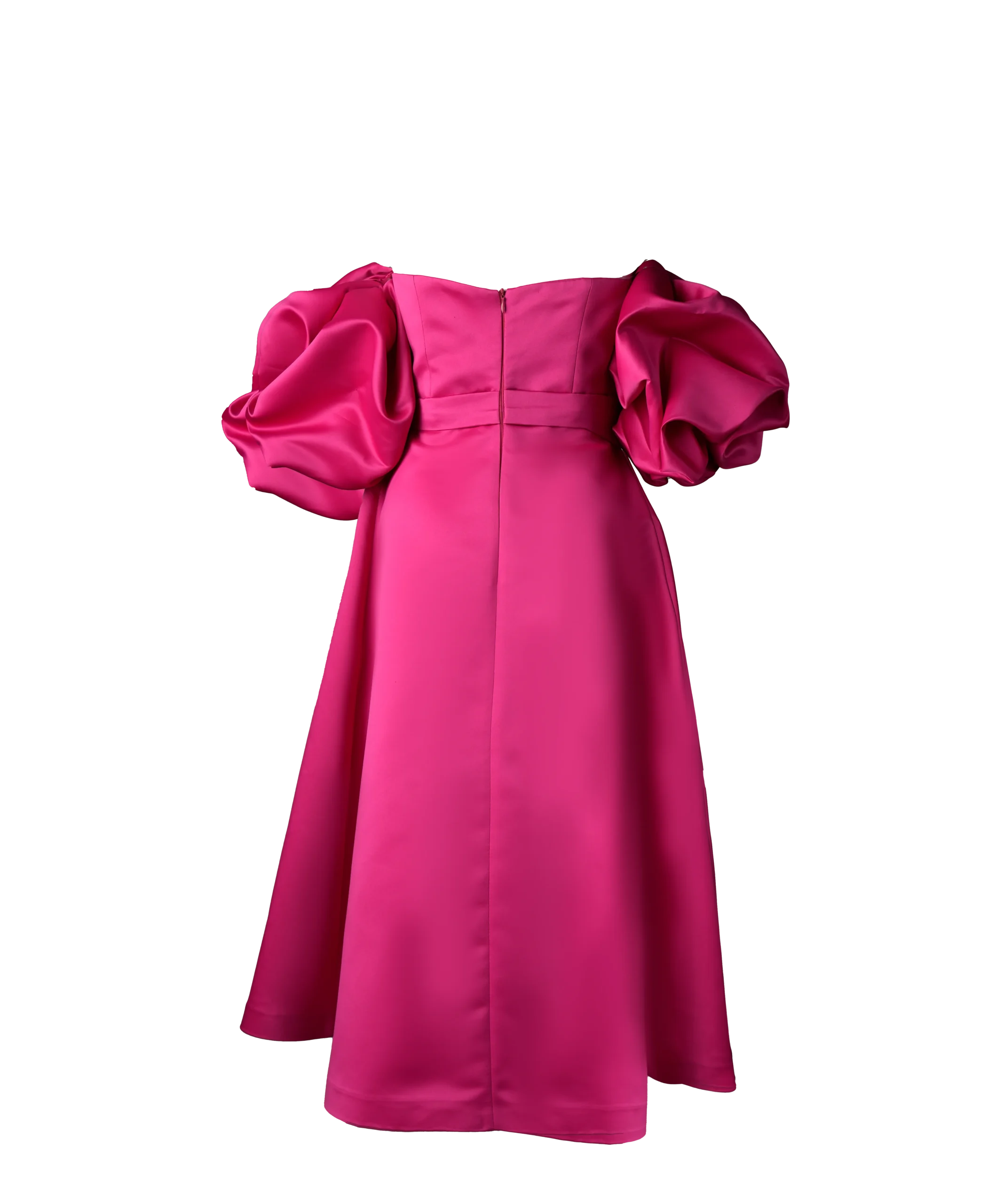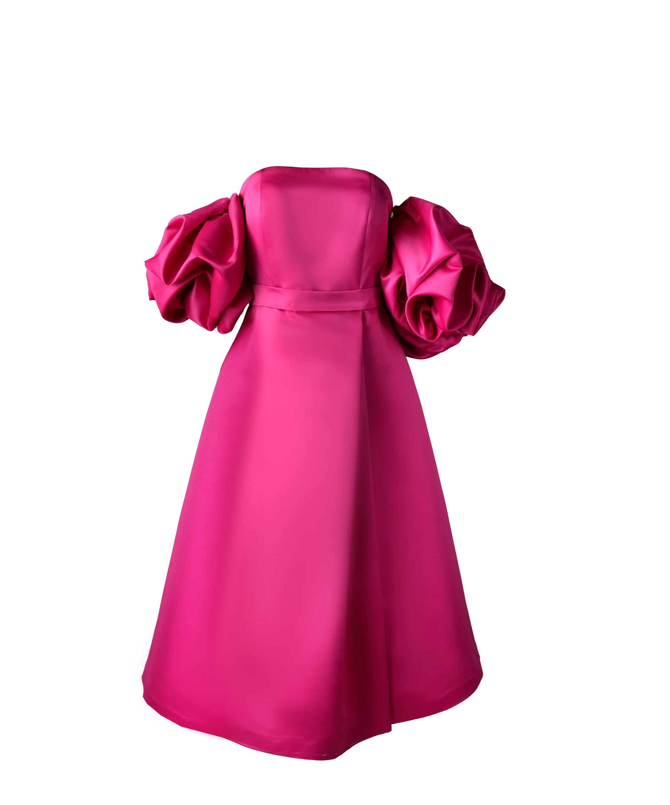 پیراهن میدی دکلته نازنین دارای آستینهای پفی است، که پایینتر از سرشانهها قرار میگیرد. در حالی که پیراهنهای مجلسی میتوانند آستینهای بلندتری داشته باشند، این مدل آستینها بسیار کلاسیک و منحصربهفرد هستند.