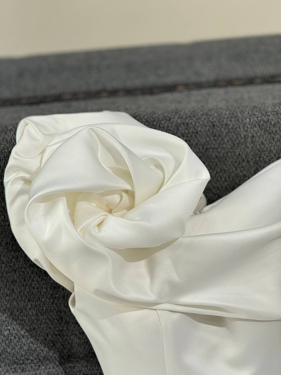 پیراهن ارکیده سفید با طراحی دکلته و اف شولدر، یک گزینهی زیبا و شیک برای مراسم عقد، فرمالیته و مهمانیهای رسمی است. استفاده از ساتن آمریکایی با بافتی لطیف و درخشان، جلوهای لوکس و ظریف به این لباس بخشیده است.