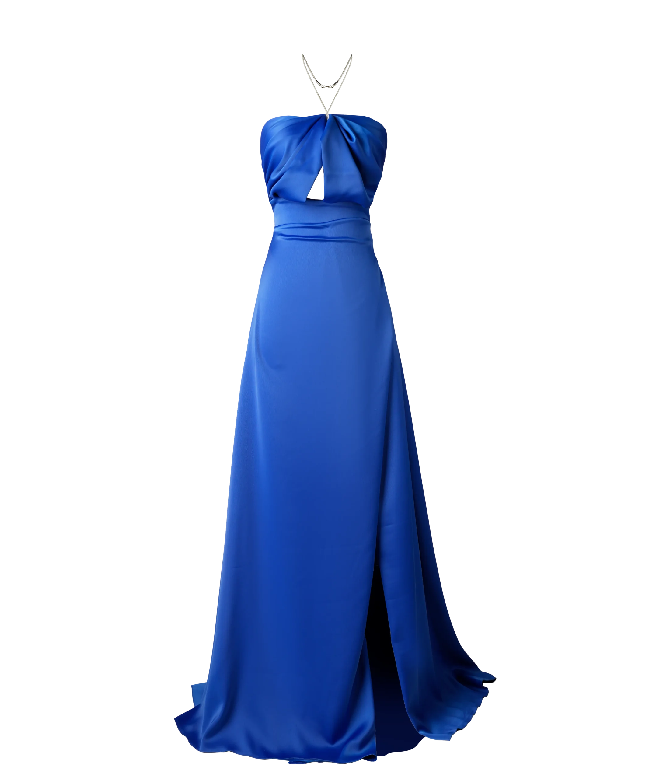 رنگ آبی، به عنوان یک رنگ آرام و ملایم، به پيراهن ماكسي ساتن آيناز جذابیت و شکوه خاصی می‌بخشد. این رنگ با جزئیات نگینی هماهنگی خوبی دارد و ظاهری متعادل و رویایی به پارچه ساتن می‌بخشد.