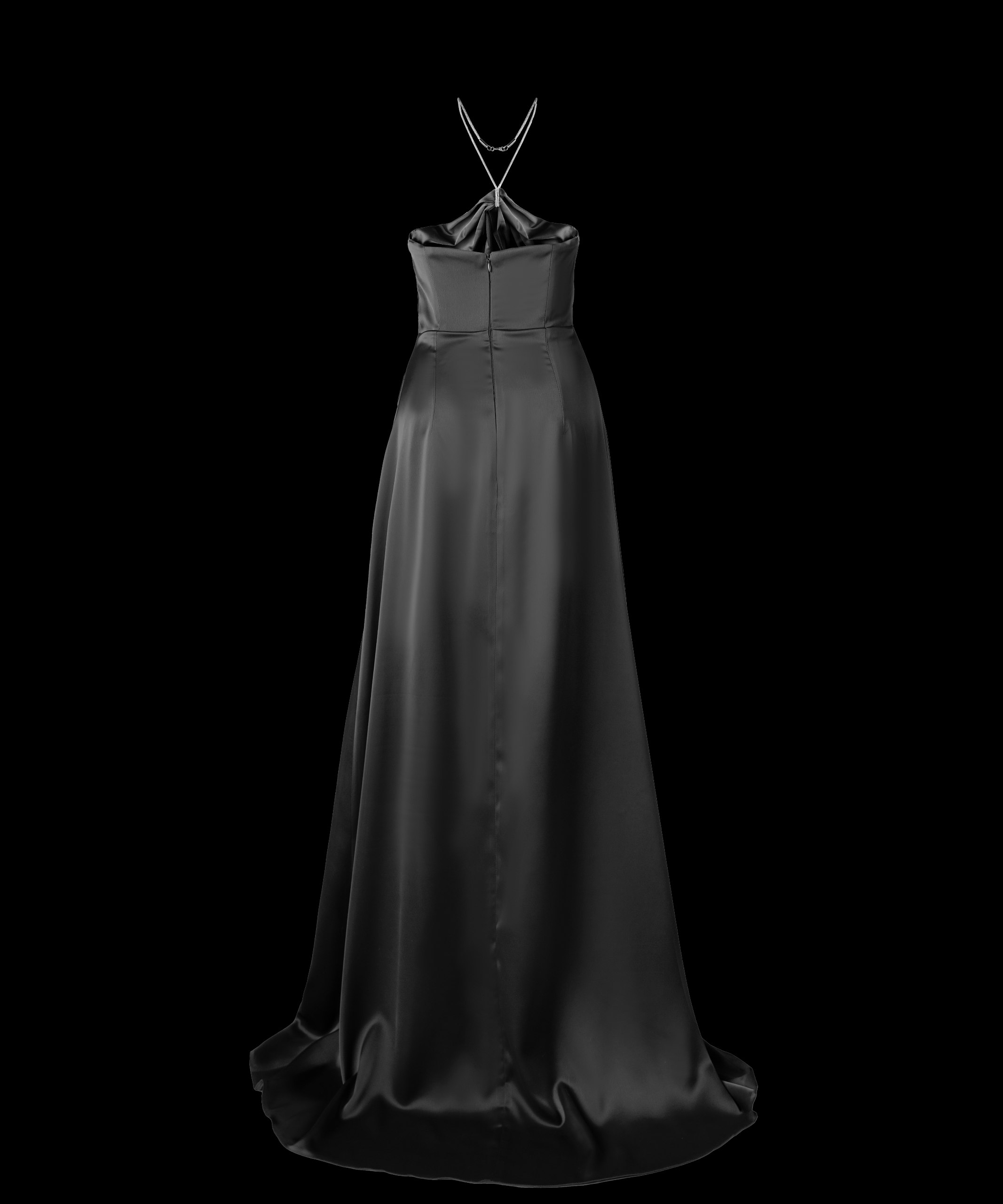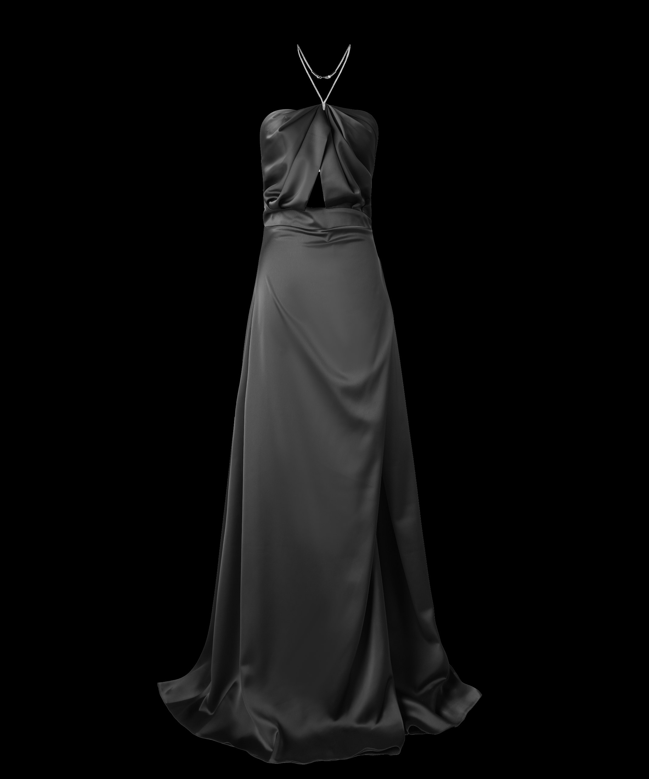 مشکی یک رنگ کلاسیک است و به پیراهن پشت باز ماکسی با یقه گردنبندی نگینی، جلوه‌ای متفاوت می‌بخشد. رنگ مشکی با جزئیات نگینی یقه، تعادل و کنتراست خوبی برقرار می‌کند و لباس را بیشتر برجسته می‌سازد.