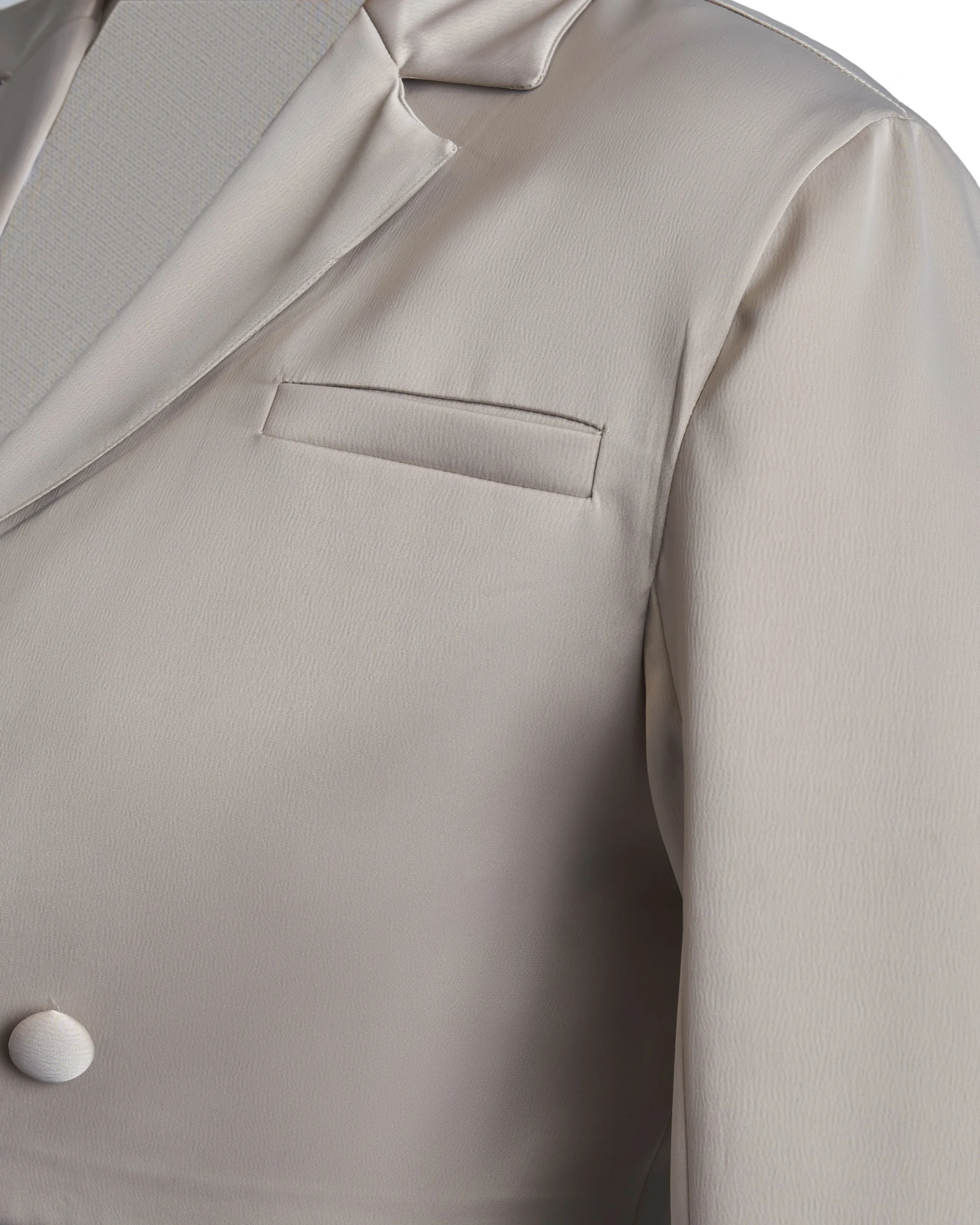 • جنس برجسته: با جنس ساتن ظریف و براق، این کت نه تنها احساس راحتی را به شما می‌کنید، بلکه با نور چراغ‌ها در مهمانی‌ها و جشن‌ها به طرز فوق‌العاده‌ای می‌درخشید.
